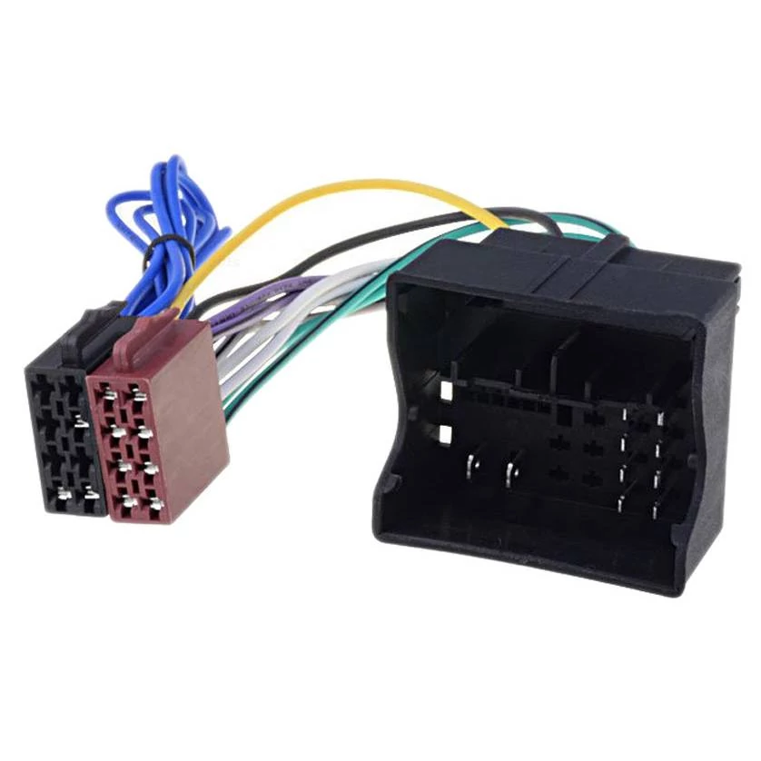 Volkswagen autórádió csatlakozó ISO átalakító, Volkswagen, Seat, Skoda, Audi MIB csatlakozó. Az átalakító csatlakozó kábelköteg tartalmazza a táp és a hangszóró kábeleket is, minden kábel feliratozva van a funkciójának megfelelően. A gyári kábelkötegen már semmi módosítás nem szükséges, a csatlakozó mindent átalakít az ISO szabványnak megfelelően.