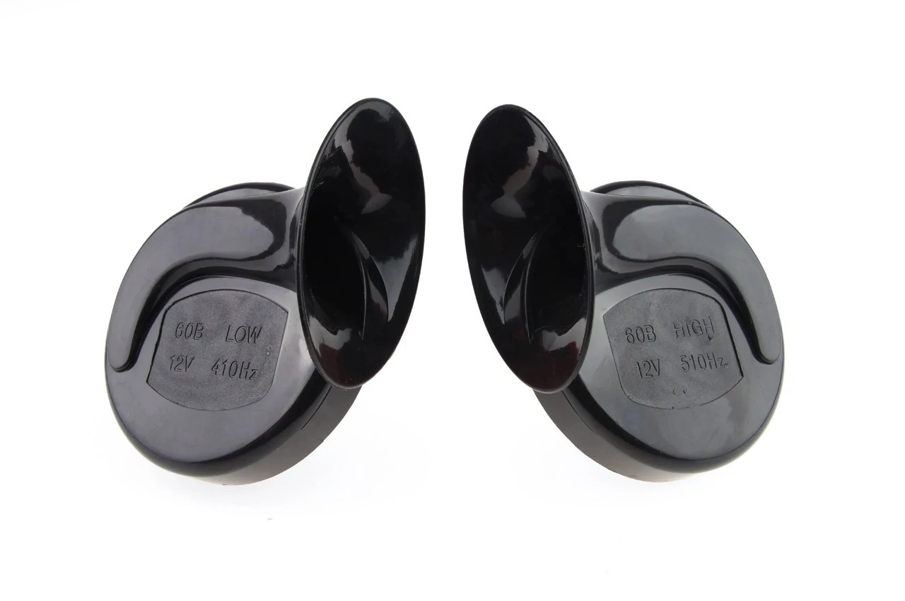 Tartós, időjárásálló 2 hangú autó kürt, harsány, hangos frekvenciával.