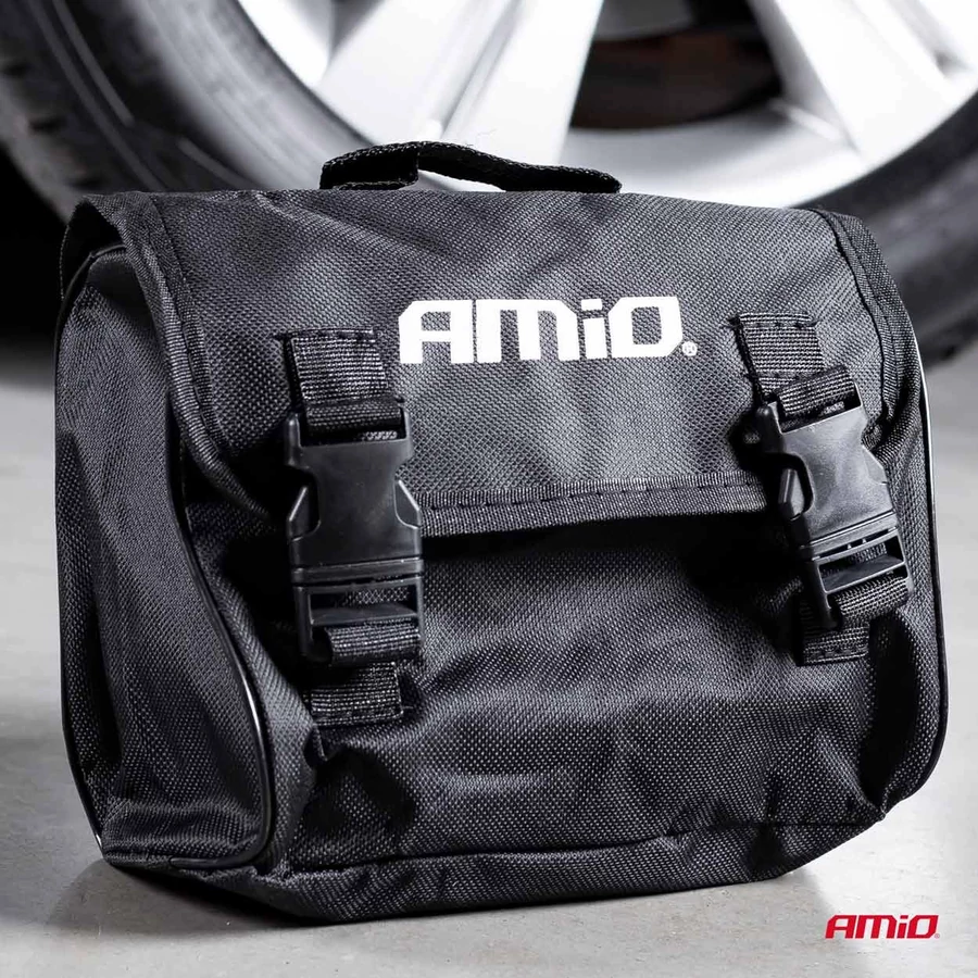 Autókompresszor nyomásmérővel. Tömör, fémházban lévő, gumilábakon álló eszköz, amely csökkenti a kompresszor működése során fellépő rezgéseket. A kompresszort kerekek, labdák, pontonok, medencék felfújására tervezték, a mellékelt három különböző szelepes fúvókának köszönhetően. A kompresszor áramellátása egy autós öngyújtó aljzatról történik.