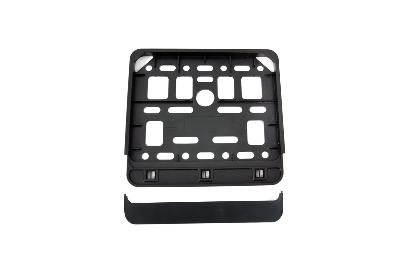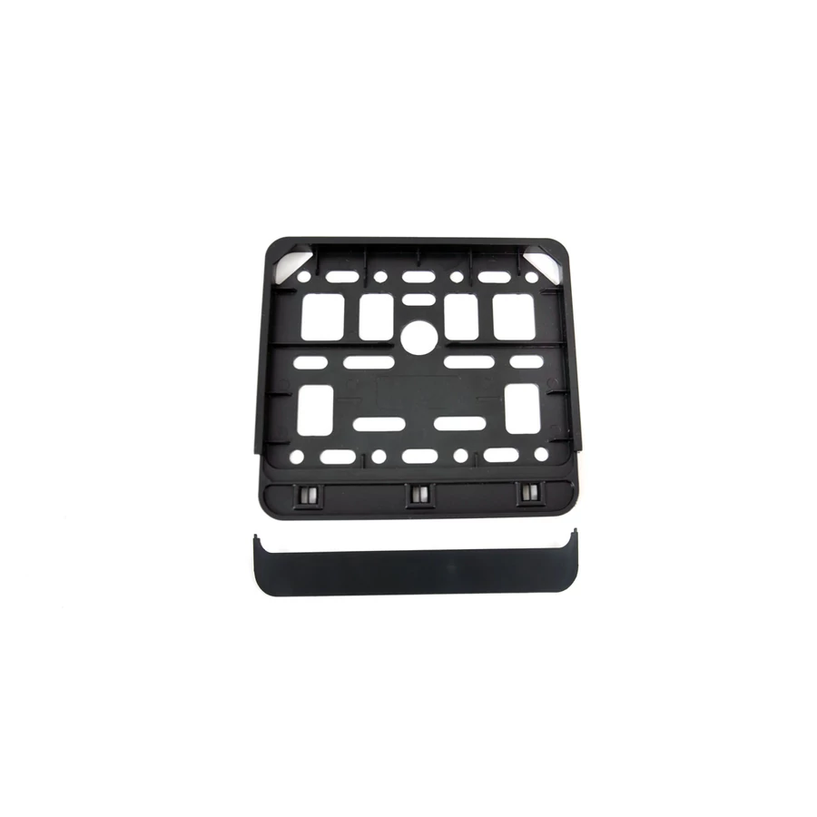 Rendkívül tartós ABS-ből készült, egy darabból álló keret. Univerzális, könnyen felszerelhető, tartós, lyukrendszerrel rendelkezik, amely lehetővé teszi, hogy bármilyen motorkerékpárra felszerelhető legyen anélkül, hogy további lyukakat kellene fúrni a vázba. A rugós rendszer tökéletesen védi a keretet a motorkerékpár rezgéseitől, valamint a rendszámtáblát a keretben lévő rezgésektől.