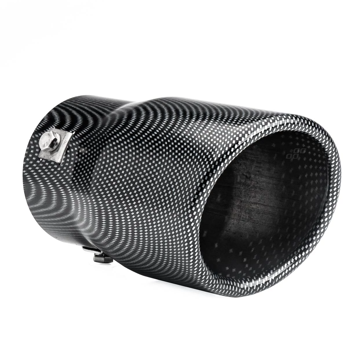 Rozsdamentes acél kipufogóvég karbon mintás festéssel.