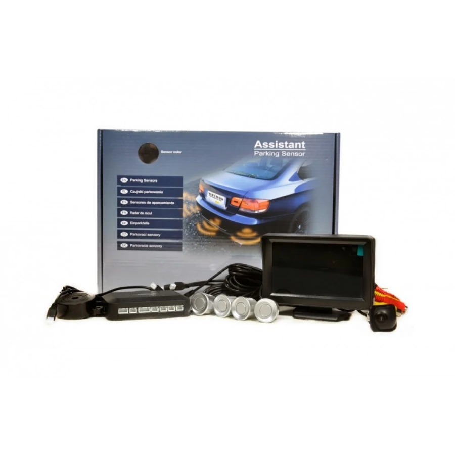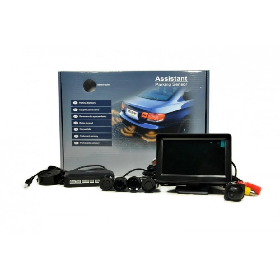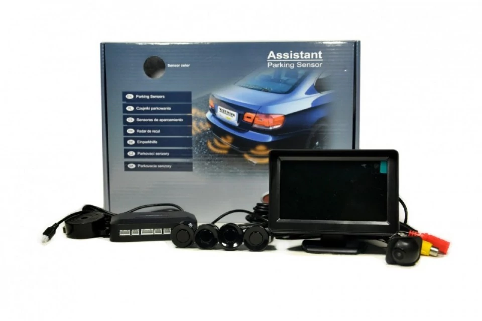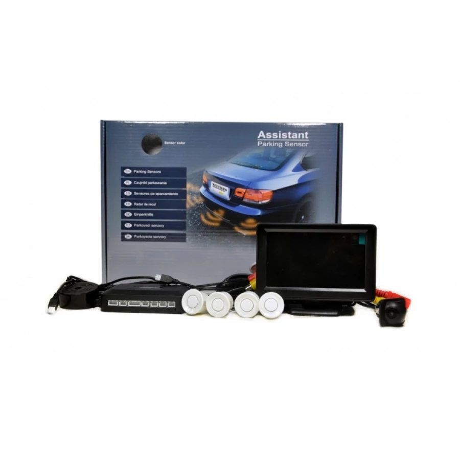 A monitoron a távolság előre megrajzolt vonalakon beazonosítható, így lehet tudni az akadály távolságát az autótól, emellett hanggal is figyelmezteti a sofőrt az akadály közelségére. A szenzorok fekete, fehér vagy ezüst színben választhatóak. A lökhárítóba a megfelelő helyre való befúrásukkal könnyen rögzíthetőek. A szenzorok gyárilag döntöttek így beállításuk a szenzorok elforgatásával történik! A befurható kamera színes képek megjelenítésére alkalmas és vizálló tokozással látták el!