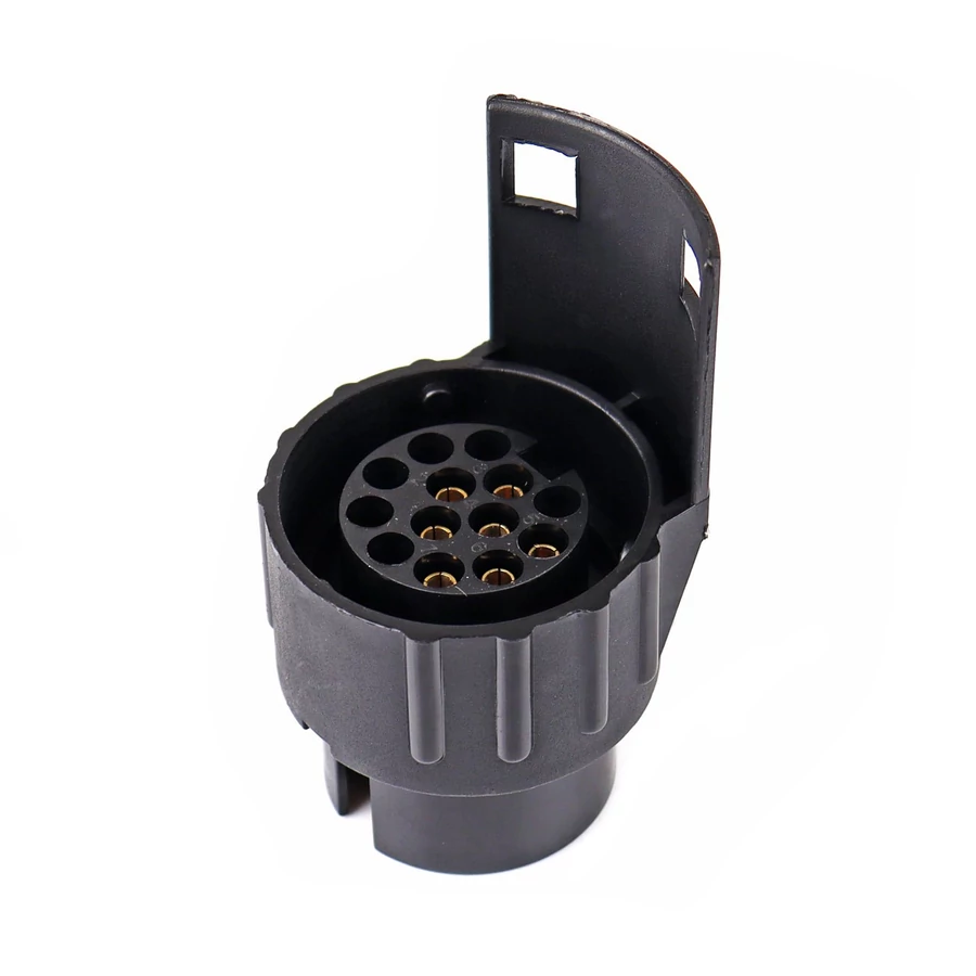 A 13 tűs csatlakozó szabványos áramellátást biztosít a könnyű és nehéz pótkocsik, egy- és kéttengelyes pótkocsik, lakókocsik és lakókocsik világításához - 12 voltos járműfeszültségről táplálva.