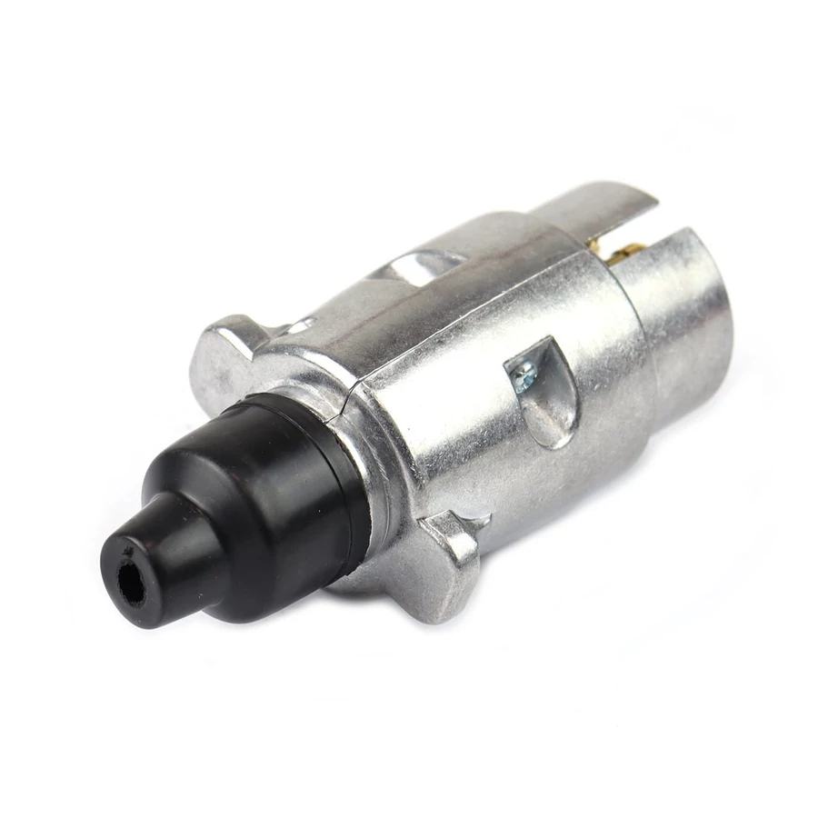 Alumínium csatlakozó dugó 7 pólusú pótkocsikhoz és lakókocsikhoz. A csatlakozó dugó rézérintkezőkkel rendelkezik. 12/24V-os rendszerhez használható.