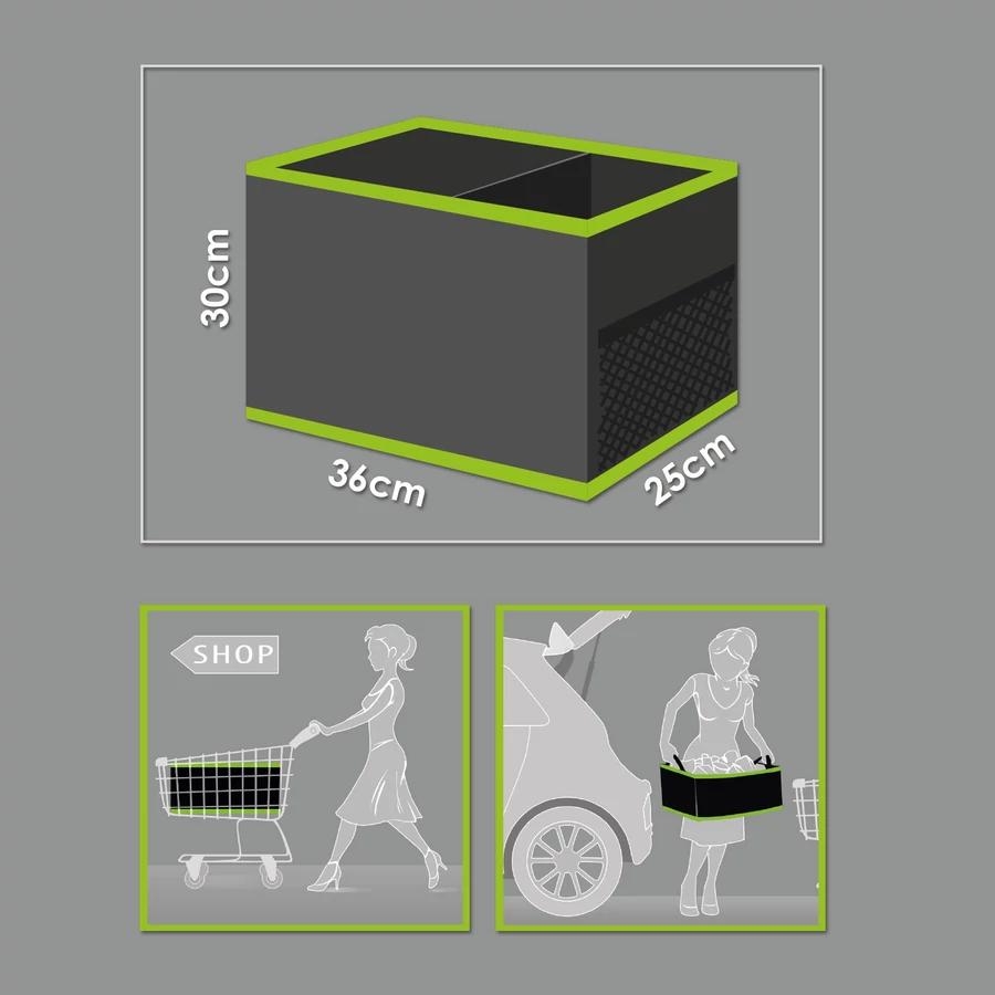 Önnek is sok bosszúságot okoznak a csomagtartóban fékezéskor, kanyarodáskor szabadon mozgó tárgyak? Ezzel a csomagtartóba tehető táskával ennek vége! Autós felszereléseit vagy akár a bevásárláskor vásárolt termékeket is kényelmesen tárolhatja benne, anélkül hogy ide-oda mozognának a csomagtartóban. Egy mozdulattal összecsukható, az oldalán található csatokkal és fogantyúval akár hordtáskaként is használható.
