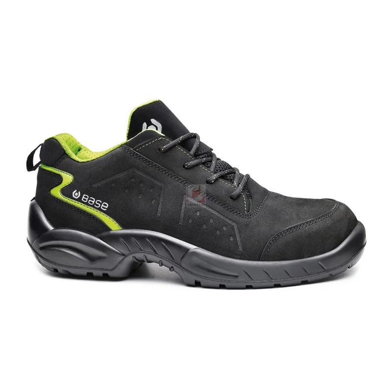 Base S3 munkavédelmi cipő magasabb vízálló tulajdonsággal rendelkező Nabutek bőr felsőrésszel. Acél orrvédelemmel és kompozit talpátszúrás elleni védelemmel ellátott, ütéscsillapítás a saroknál. Antisztatikus és szénhidrogéneknek ellenálló egyedi kialakítású talp, a férfi és női lábnak megfelelő külön kapli szélességgel is választható. Javasolt felhasználási területek: könnyűipar, mezőgazdaság, építőipar, szolgáltatóipar logisztika. Felhasznált anyagok és technológiák: Felsőrész: Nabutek technikai bőr.Bélés: SmellStop szagsemlegesítő és antibakteriális technológiával.Középtalp: Fresh'n Flex technológiával. Kapli: Acélból. Talp: Fáradtsággátló AirTech+TPU Skin technológiával.
