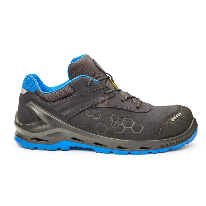 Base S3 munkavédelmi cipő magasabb vízálló képességű Nabutek bőr felsőrésszel, ESD tulajdonsággal. Kompozit orrvédelemmel és talpátszúrás elleni védelemmel ellátott, ütéscsillapítás a saroknál. A minél nagyobb védelem érdekében orrborítással rendelkezik. Antisztatikus és szénhidrogéneknek ellenálló egyedi kialakítású talp, a férfi és női lábnak megfelelő külön kapli szélességgel is választható. Javasolt felhasználási területek: elektronika, könnyűipar, kereskedelem, szolgáltatóipar, logisztika, de akár az építőipar is. Felhasznált anyagok és technológiák: Felsőrész: Nabutek bőr. Bélés: SmellStop szagsemlegesítő és antibakteriális technológiával. Kapli: SlimCap technológiával. Középtalp: Fresh'n Flex talpátszúrás elleni védelemmel. Talp: Fáradtsággátló AirTech+TPU-Skin technológiával.