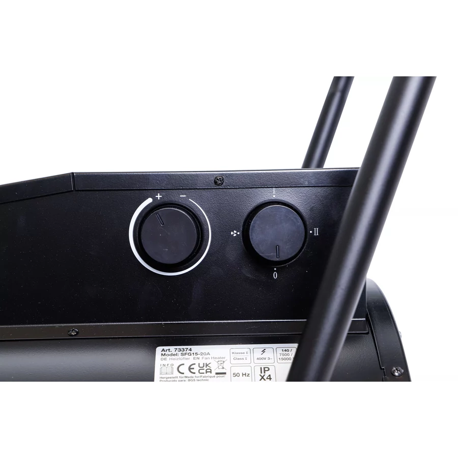 - 2 fűtési fokozat (7500 / 15000 W) és ventilátoros működés