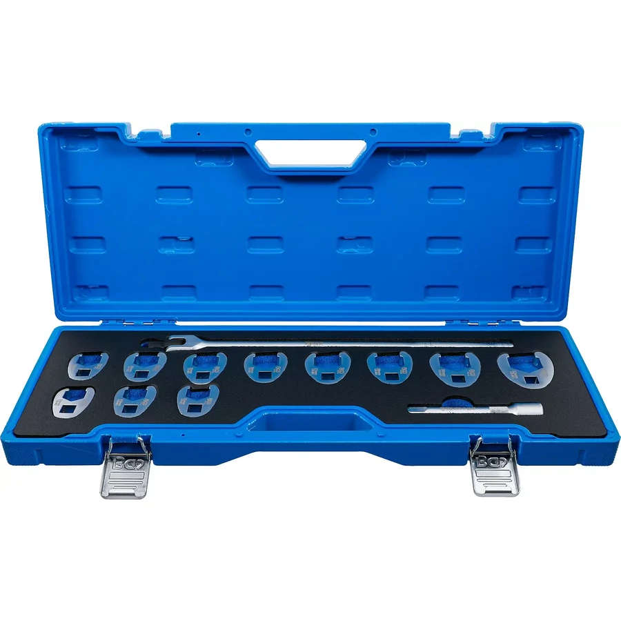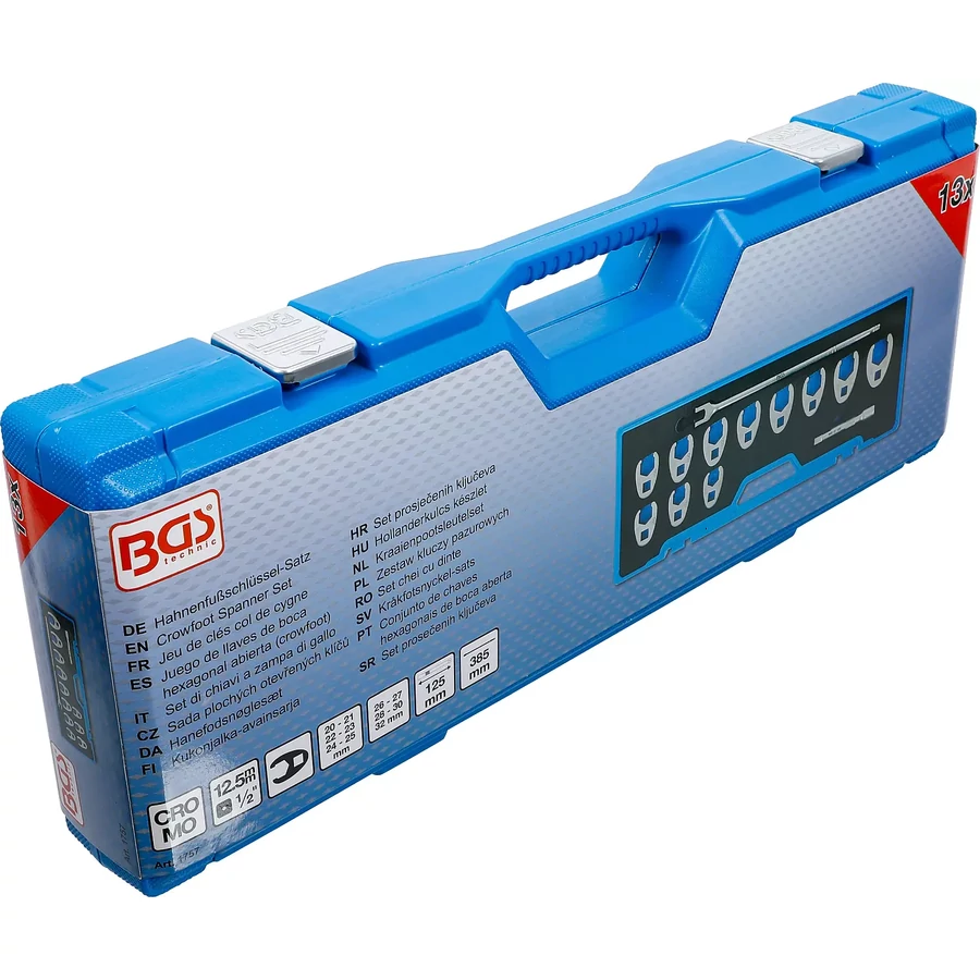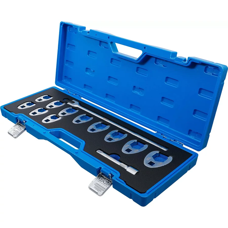 A BGS Hollanderkulcs készlet összesen 13 darabot tartalmaz. Ez a készlet különösen hasznos lehet a mechanikai munkák során, mivel a kampós talpú kulcsok széles körű alkalmazhatóságot biztosítanak.