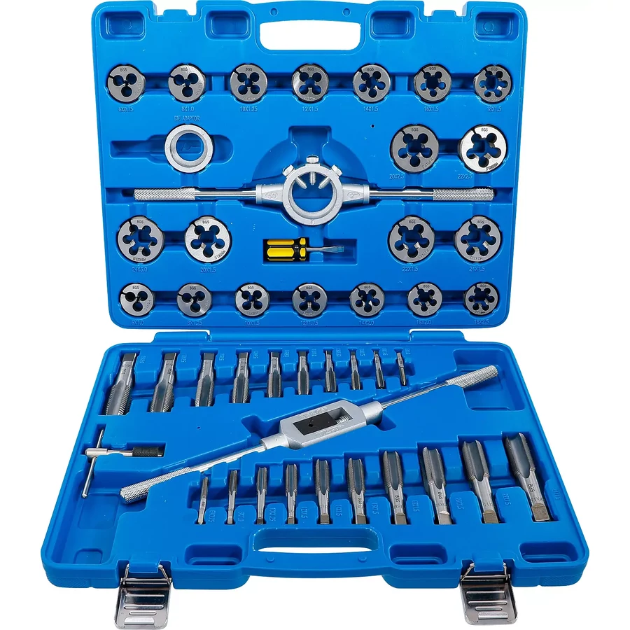 A BGS M6 - M24 menetfúró és menetmetsző készlet egy 45 darabos szerszámkészlet, amely metrikus és finom menetes méretezéshez készült.