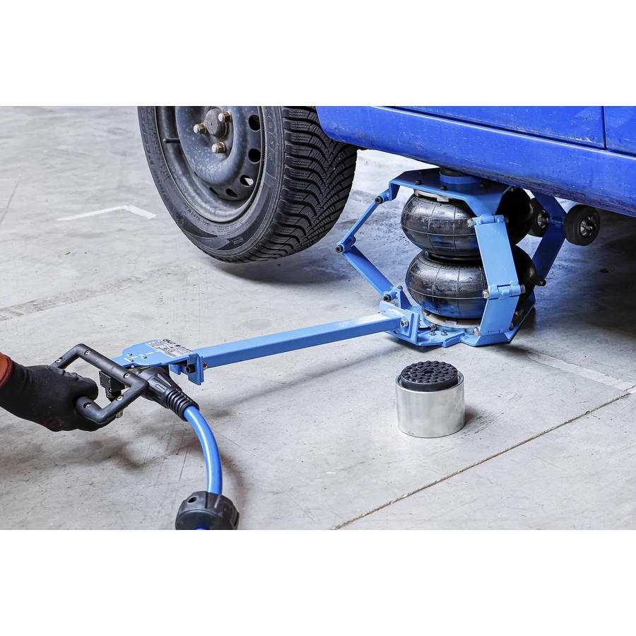 Sűrített levegővel támogatott rendszer a könnyű emeléshez. Szupergyors működés és szinte karbantartásmentes. 2 emelőballonos változat. Többrétegű anyagból készült, rendkívül ellenálló és stabil ballonok. 2 görgővel mozgatható. Tökéletes a gumiabroncs szervizek, közúti segélyszolgálatok és a javítóműhelyek széles skálája számára. Gyors emelést tesz lehetővé a 115 és 410 mm közötti emelési tartományban. Biztonsági túlnyomásos szelep. A maximális emelési magasságot a mellékelt kiegészítő adapterrel (Ø 98 mm) lehet elérni. Stabil felcsúsztatható adapter 83 mm magassággal