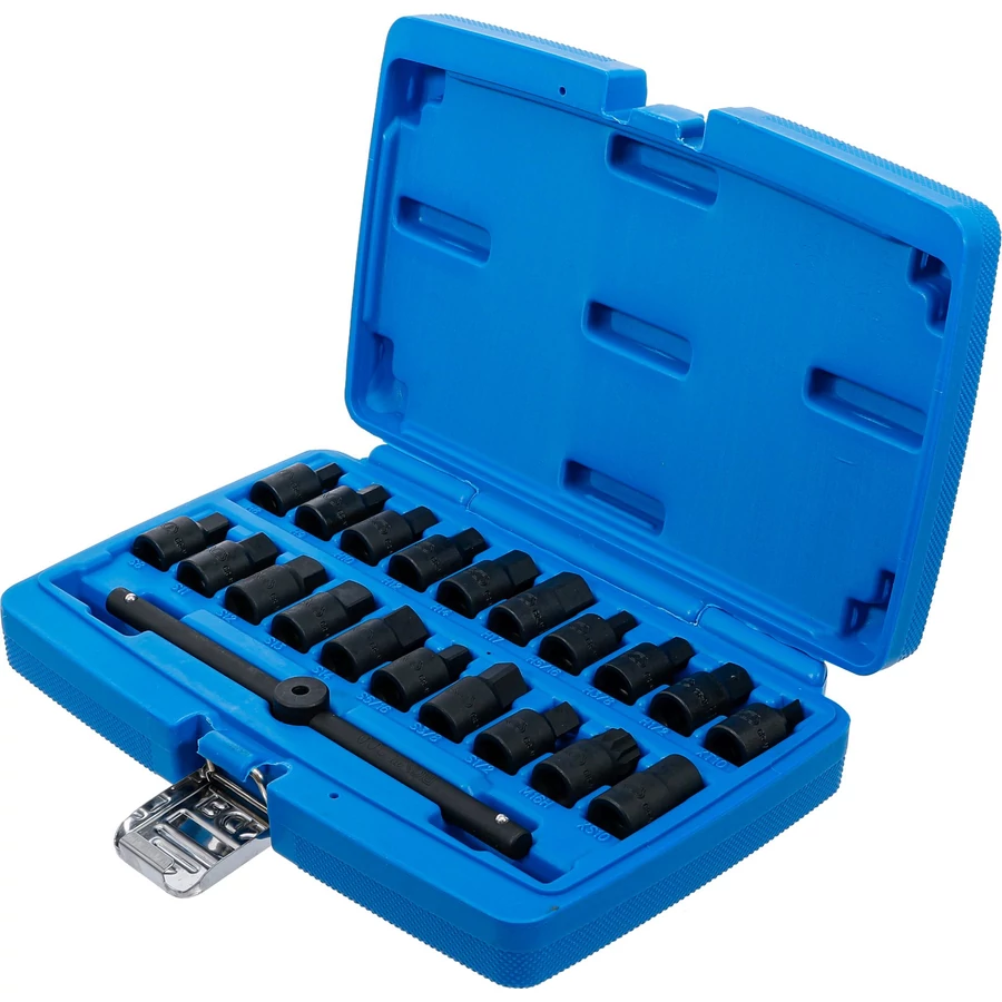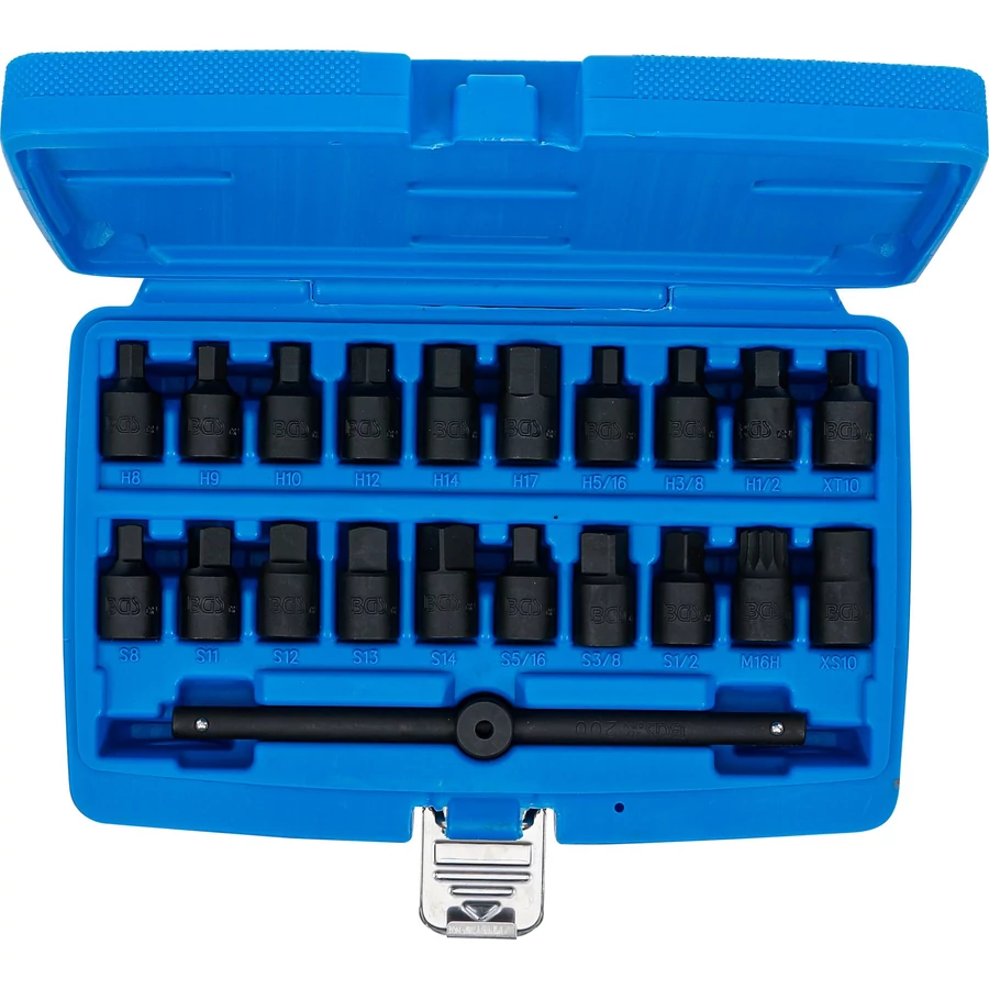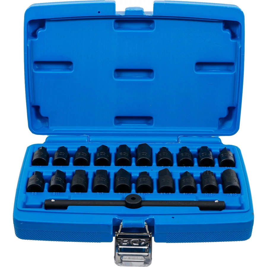 - 9 db hatlapfejű dugókulcs: 8 - 9 - 10 - 12 - 14 - 17 mm, 5/16" - 3/8" - 1/2"