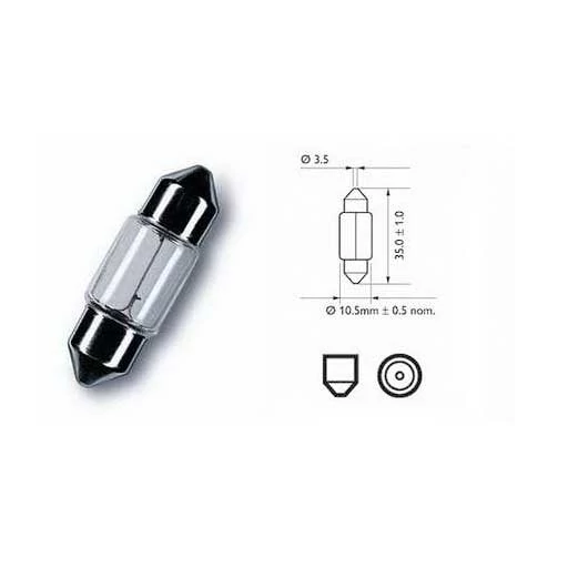 A C10W típusú izzó SV8,5 (T10x35) foglalattal autók belső világításához, például lámpatestekhez, olvasólámpákhoz és egyéb kisebb fényforrásokhoz használható. A 10W teljesítmény elegendő fényt biztosít, míg a 12V-os feszültség megbízható működést garantál. Tökéletes választás azok számára, akik hosszú élettartamú, energiatakarékos világítást keresnek járművük belső terében.