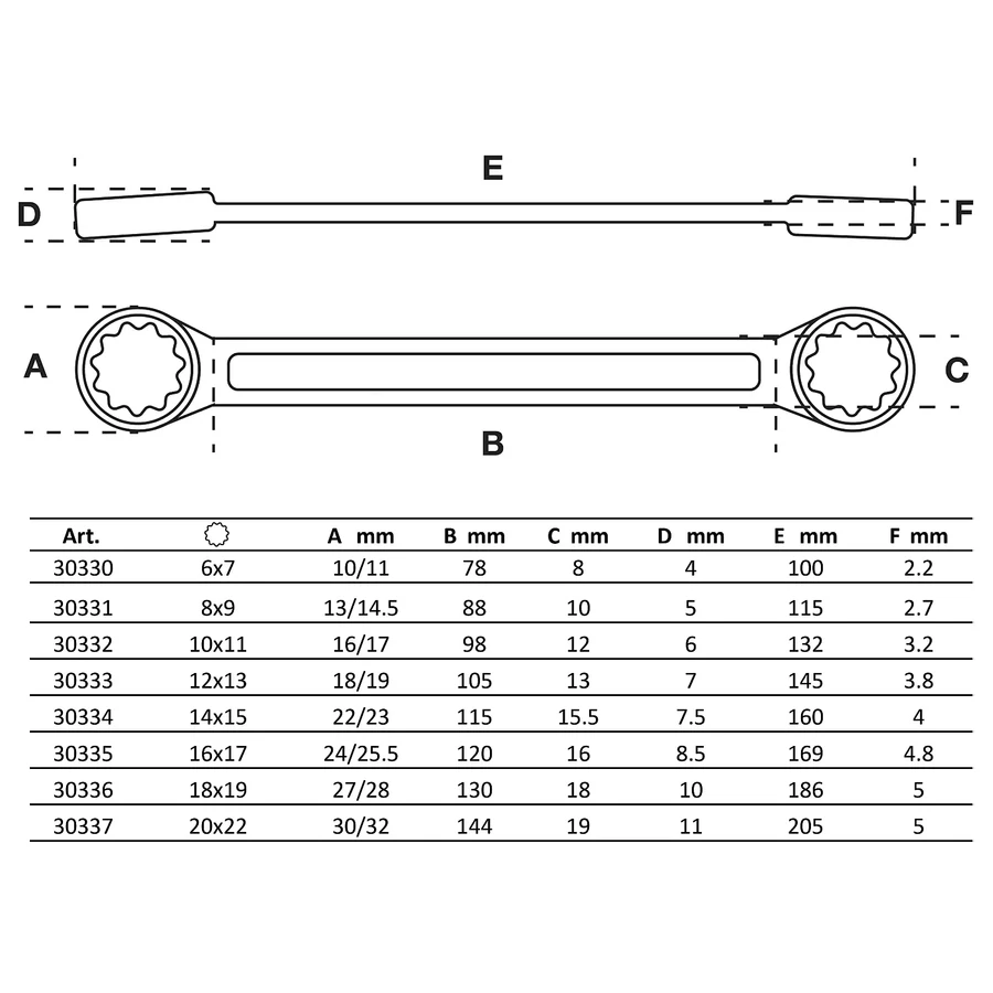 • Csillagkulcs, extra lapos, 12 x 13 mm