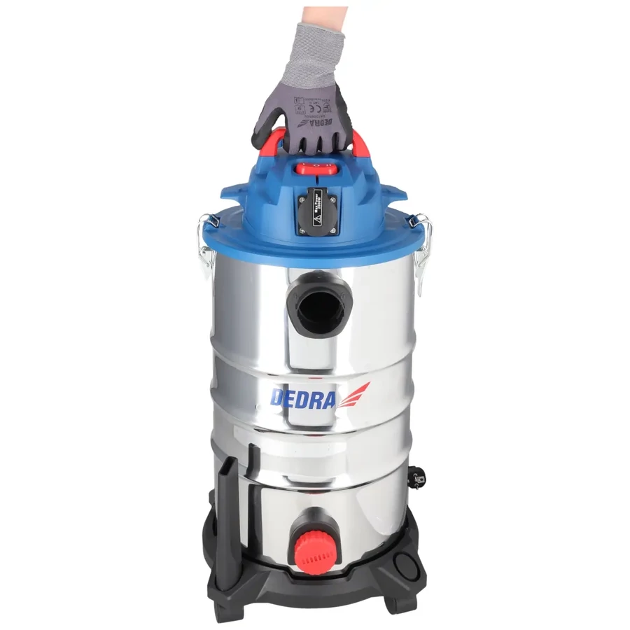A DEDRA DED6612 egy sokoldalú ipari porszívó, amely száraz és nedves szennyeződések hatékony eltávolítására egyaránt alkalmas. Ideális műhelyekbe, garázsokba, háztartásokba vagy építési munkaterületekre. Erőteljes 1400 W-os motorjának és 30 literes rozsdamentes acél tartályának köszönhetően hosszabb ideig használható ürítés nélkül, még nagyobb szennyeződések esetén is.