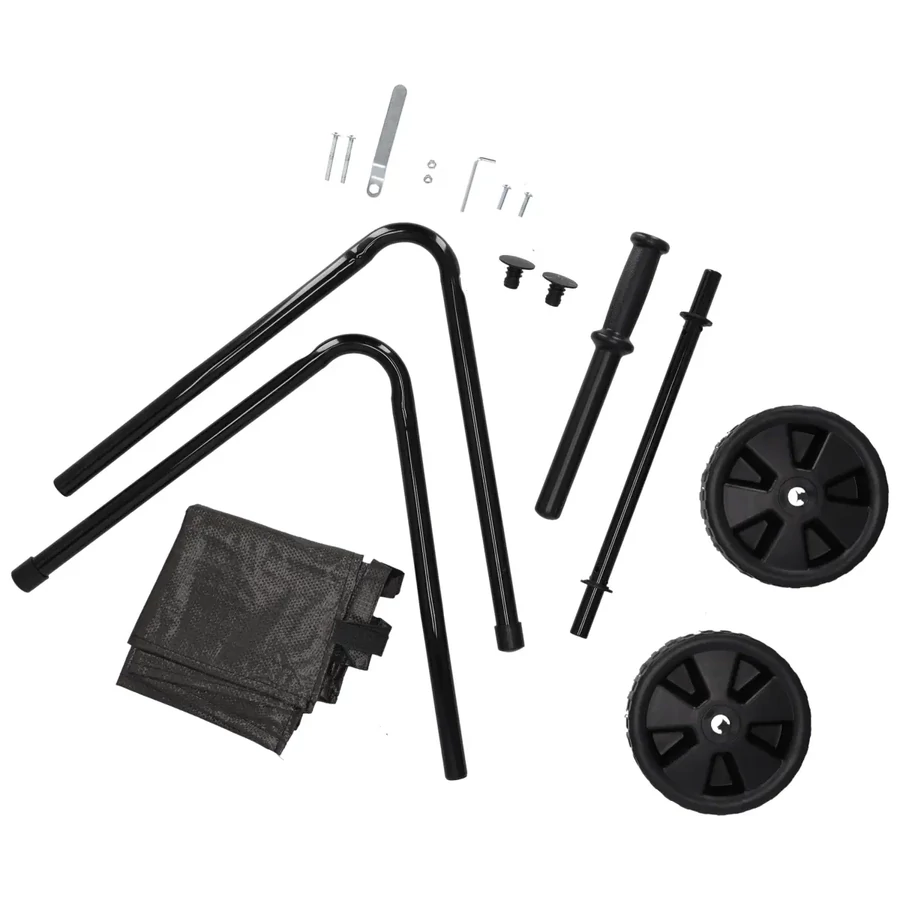 Ezenkívül az aprítógép nagyméretű szállító kerekekkel van felszerelve a könnyű használat érdekében. Ezek jelentősen megkönnyítik a készülék mozgatását, ami különösen fontos a nagyobb kertek esetében.