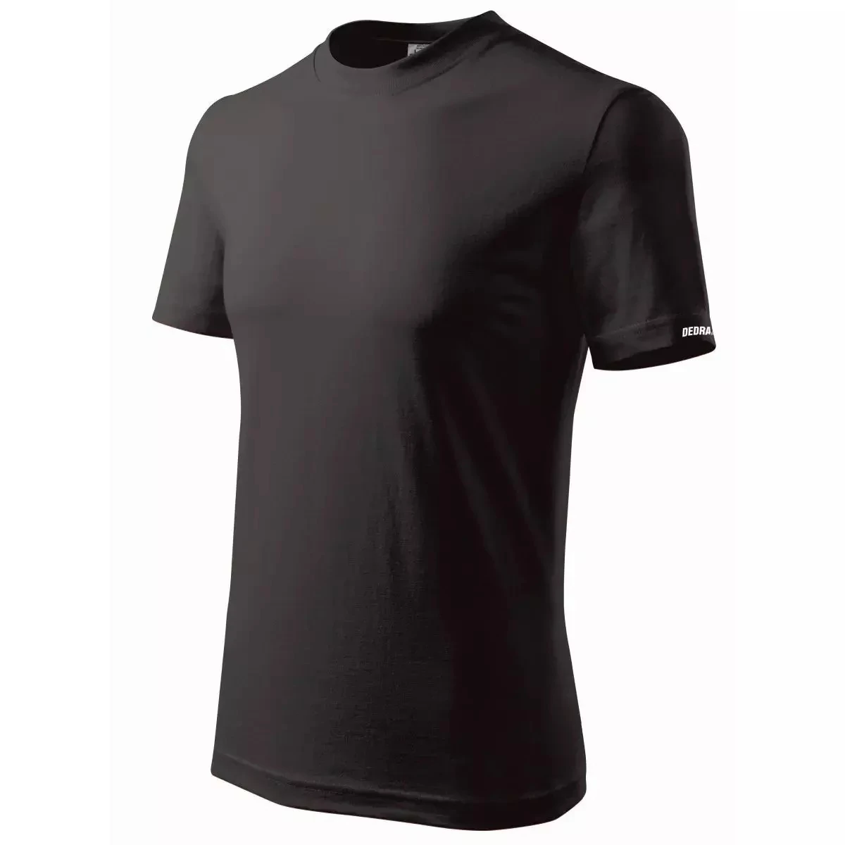 Ez a férfi póló 100% pamutból készült, Anyagának súlya 145 g/m2, Fekete színben, fehér Dedra logóval az ujján.