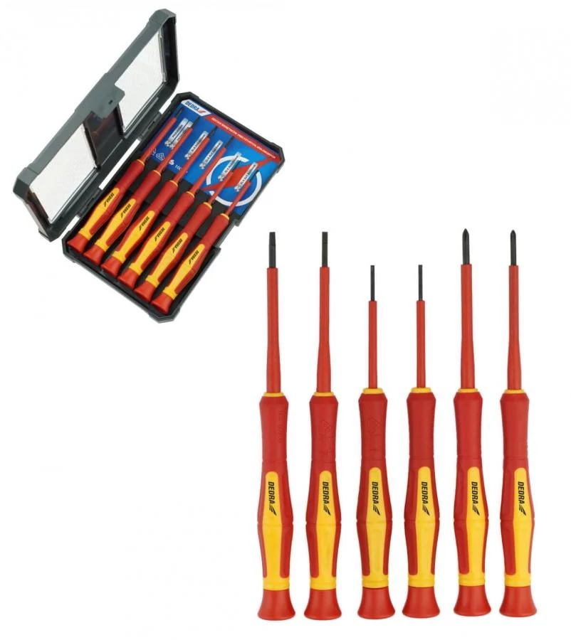 A 6 darabos szigetelt precíziós csavarhúzó készlet olyan szerszám, amelyet az elektromos berendezésekkel kapcsolatos munkákhoz nélkülözhetetlen. A csavarhúzó védi a felhasználót az 1000 V-ig terjedő áramütés ellen. A szigetelt csúcs S2 acélból készül. Ergonomikus fogantyú csúszásmentes felülettel biztosítja a biztonságos fogást és a pontosságot a munka során. VDE 1000V minősítésű csavarhúzó.