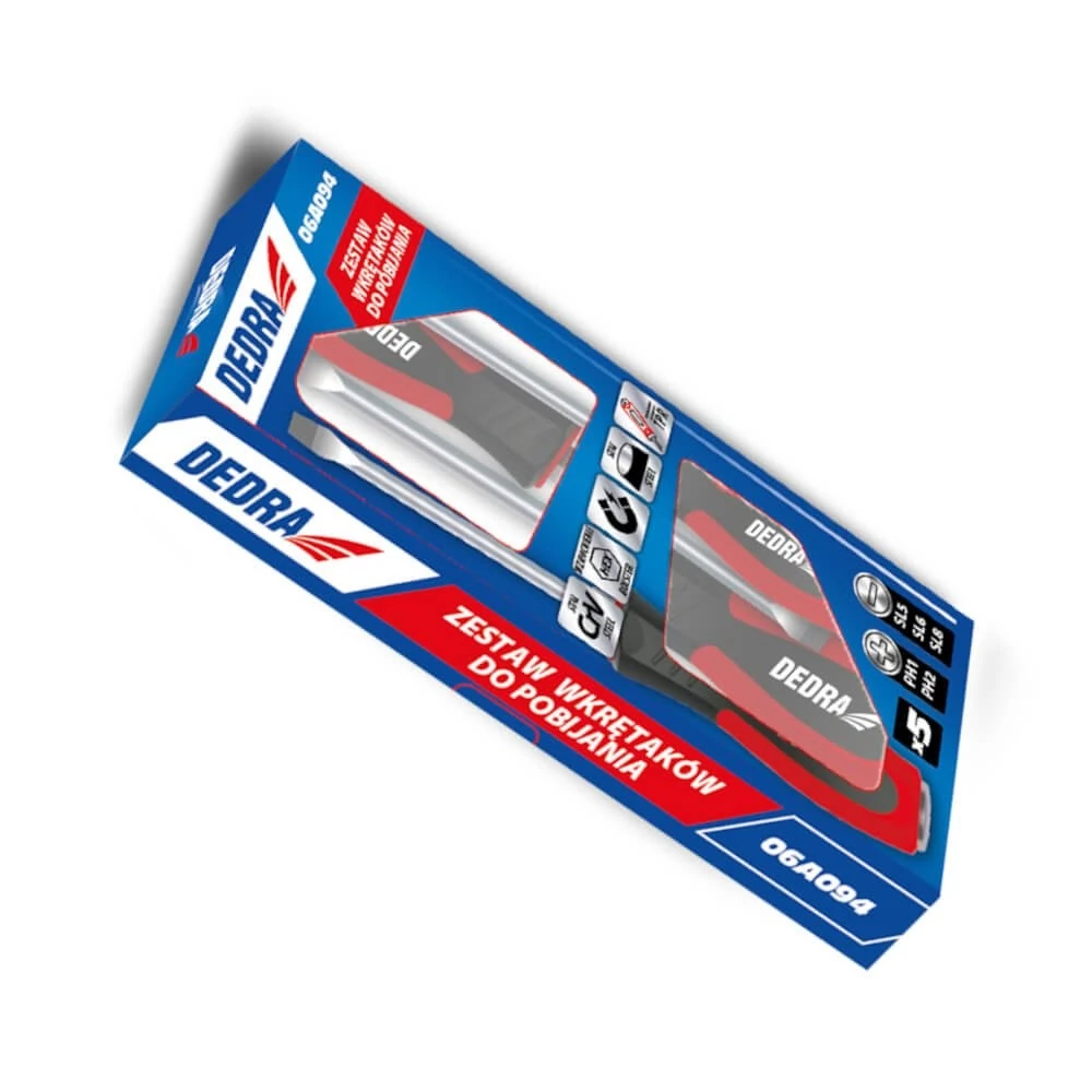 A csavarhúzók nélkülözhetetlen felszerelések minden műhelyben vagy garázsban. A DEDRA márkájú csavarhúzók CrV acélból készülnek, amelyeket nagy szilárdság és korrózióállóság jellemez. A kontúrozott fogantyú műanyag és gumi kombinációjából készül. Ez kényelmet nyújt a felhasználónak a munka során. A mágneses csúcs biztosítja a pontosságot és megkönnyíti a csavarhúzóval való munkát nehezen elérhető helyeken. A fogantyú teteje fém kialakítású, aminek a segítségével akár kalapáccsal üthető is.