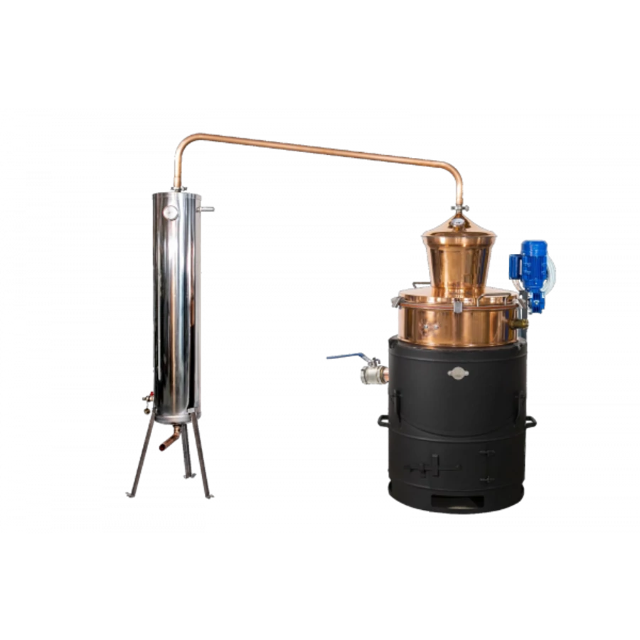 A DES 100 literes pálinkafőző elektromos keverőmotorral felszerelve ideális választás hobbi- és kisüzemi lepárláshoz. A bilincses zárórendszer gyors és biztonságos nyitást/zárást biztosít, a beépített leeresztőcsap megkönnyíti az ürítést, míg a 30 literes inox csőköteges hűtő hatékony párlatkondenzálást tesz lehetővé.