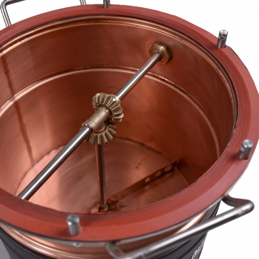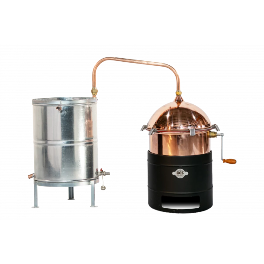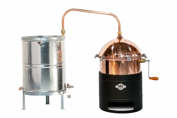 A DES 35 literes pálinkafőző kifejezetten hobbi célra és kis mennyiségű pálinka készítésére lett tervezve. Kis mérete és könnyű hordozhatósága miatt ideális szűk és zárt helyiségekben is. A kézi keverőszerkezet egyszerűen használható, és hatékonyan megakadályozza a cefre leégését a főzés során.