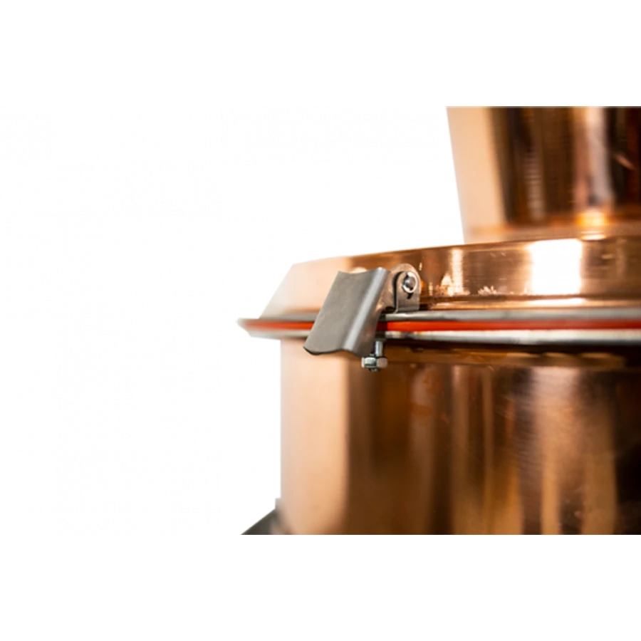 A DES 60 literes pálinkafőző kézi keverővel és bilincses zárórendszerrel készült, amely megkönnyíti a használatot és biztonságos főzést biztosít. A cefrével és párlattal érintkező minden alkatrész minősített elektrolit rézből készült, amely kiváló hővezető, ellenáll a szerves savaknak, és javítja a párlat tisztaságát, ízét és illatát. A kupola és az üst 4 mm vastag rozsdamentes acél peremmel, valamint 10 mm vastag tömítéssel csatlakozik.