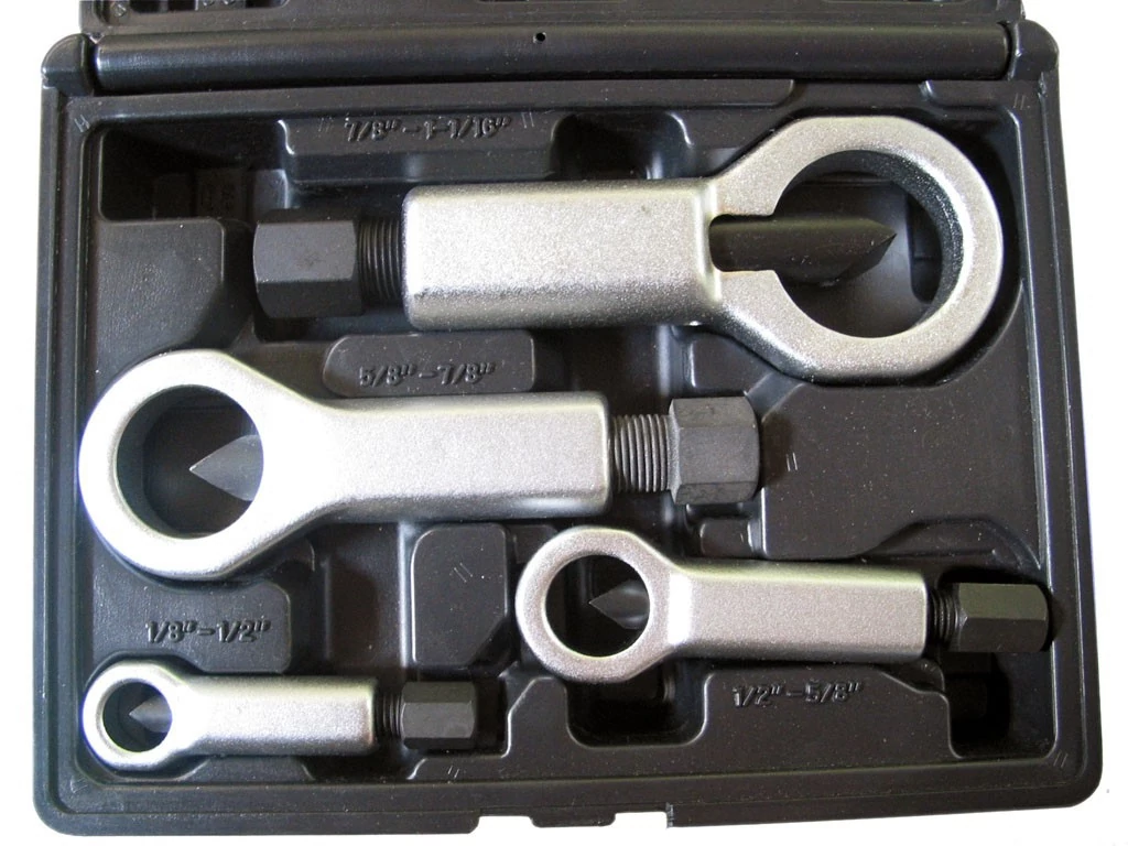 Ezzel a szerszámmal könnyen leszedhető a csavarorsóra rárohadt, rozsdás, kulccsal lehajthatatlan anyacsavar, vagy ha a csavarorsó elforog.