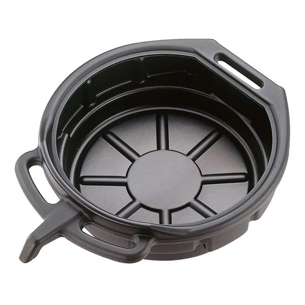 Olaj/folyadék leeresztő tálca nagy fogantyúval és kiöntő nyílással.