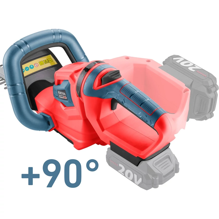 Az Extol Premium 20V akkus sövénynyíró ideális megoldás élősövények, bokrok és díszfák formázására a kertben. A hosszú, 474 mm-es fogazott vágópenge és a 16 mm-es vágási átmérő lehetővé teszi a hatékony munkavégzést, míg az állítható hátsó fogantyú ergonomikus és kényelmes fogást biztosít bármilyen szögben.
