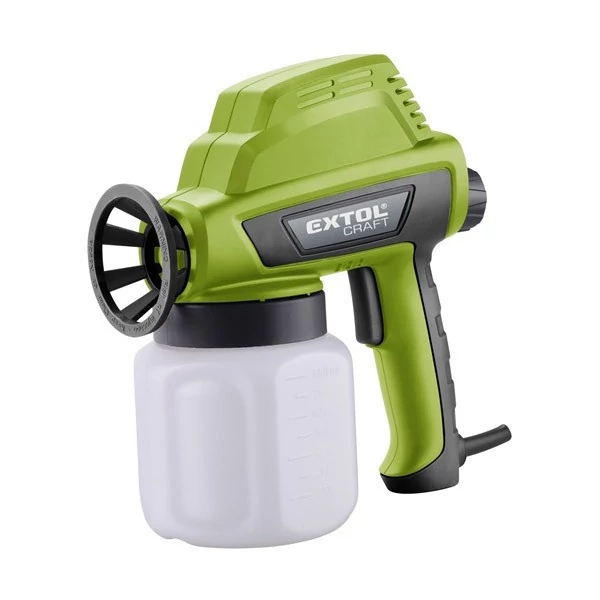 Az EXTOL CRAFT elektromos festékszóró pisztoly otthoni, hobby jellegű munkavégzésre szolgáló szerszám, amely elsősorban felületek és tárgyak festékkel történő beszórására, lakkozásra, védőbevonat felhordására és fa impregnálására szolgál. A következő anyagok felhordására használható: plasztik- és latexfesték, vízbázisú festék, alapozó, lakk, olajfesték, zománcfesték, alumínium festék, alvázfesték, fa alapozófesték, fakonzerváló szer, fapác.