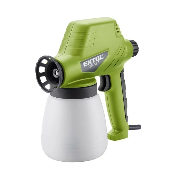 Az EXTOL CRAFT elektromos festékszóró pisztoly otthoni, hobby jellegű munkavégzésre szolgáló szerszám, amely elsősorban felületek és tárgyak festékkel történő beszórására, lakkozásra, védőbevonat felhordására és fa impregnálására szolgál. A következő anyagok felhordására használható: plasztik- és latexfesték, vízbázisú festék, alapozó, lakk, olajfesték, zománcfesték, alumínium festék, alvázfesték, fa alapozófesték, fakonzerváló szer, fapác.