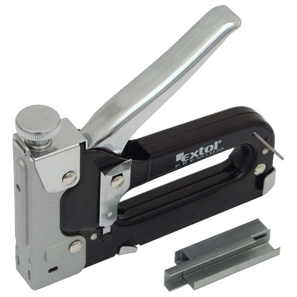 A tűzőgépnél csavar szolgál az ütés erejének beállítására.A tűzőgép.teljes mértékben fémből készült, jó ellenálló képességű szerkezet. ergonómikus kialakítású gumibetétes markolat a kapcsok hosszabb időn keresztül egy kézzel történő könnyű belövéséhez. A tűzőgép használható a hagyományos téglalap alakú, 4-14 mm-es kapcsokhoz. Nagy kapacitású tár, a hosszú ideig tartó folyamatos, utántöltés nélküli munkavégzés érdekében; a kapcsok cseréje gyorsan elvégezhető.