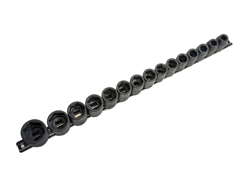 - 13 db hosszú légkulcsfej; méret: 10, 11, 12, 13, 14, 15, 16, 17, 18, 19, 21, 22, 24, 27, 30 mm