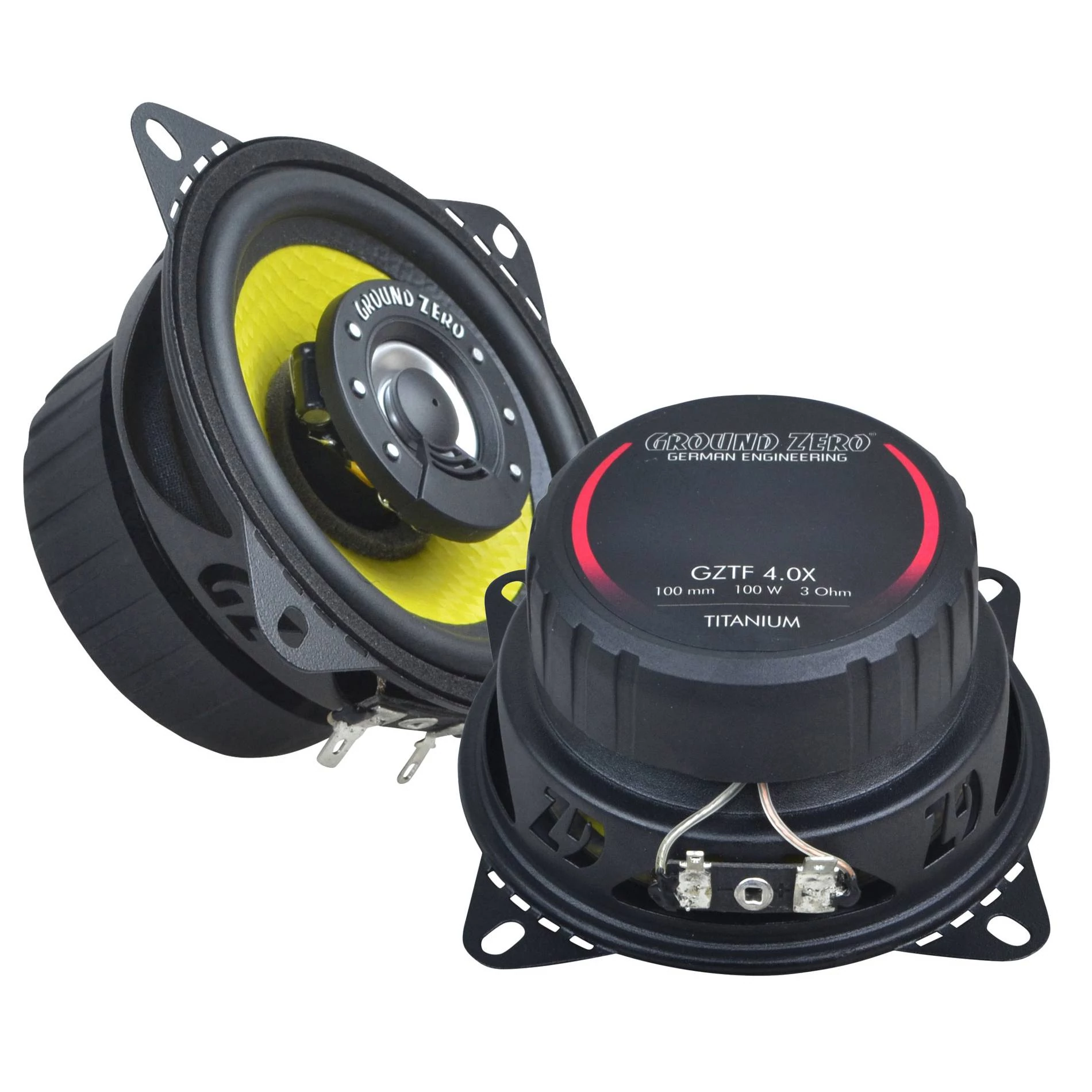 Ground Zero GZTF 4.0 X 10 cm átmérőjű 2 utas koaxiális hangszóró, 70 W folyamatos terhelhetőségű. Titanium sorozat: 3Ω tekercs, Mylar magassugárzó, HQPP-strukturált kónusz, kiegyensúlyozott, természetes hangzás, acél kosár.