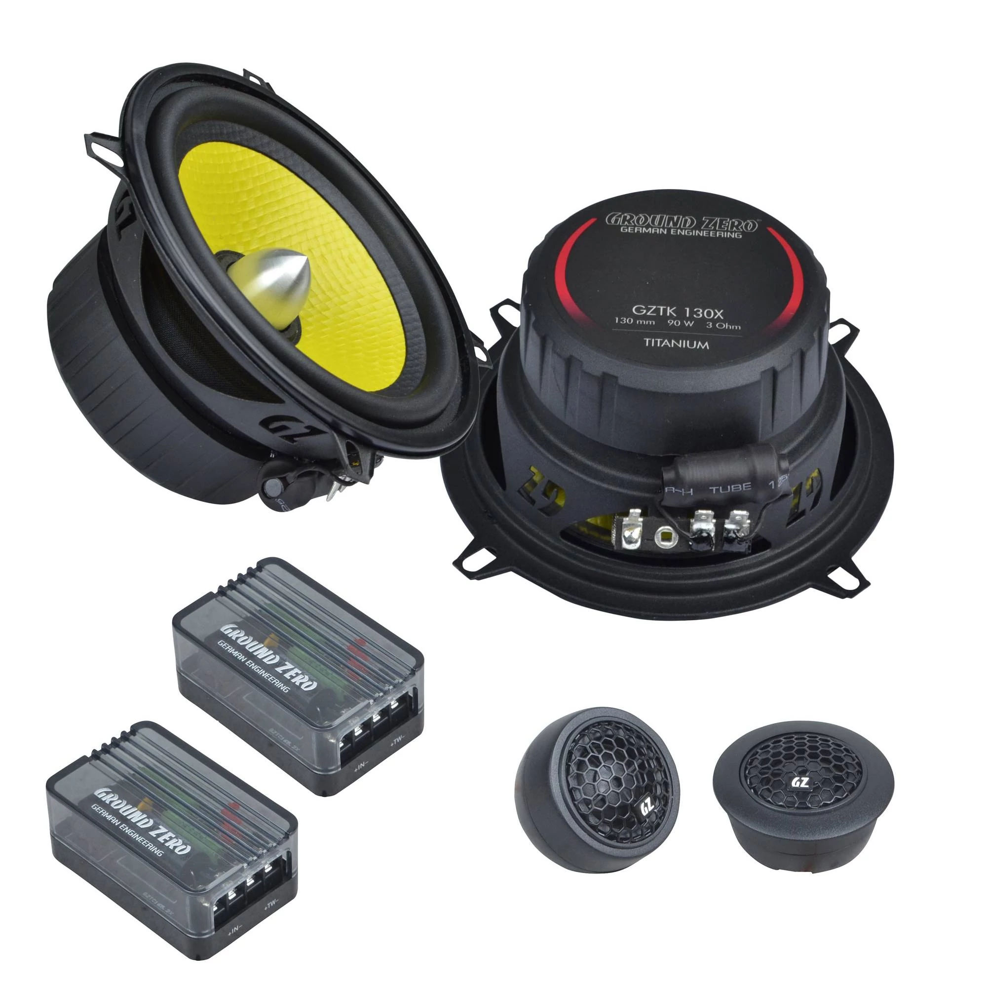 Ground Zero GZTC 130 .2 X 13 cm átmérőjű komponens hangszóró szett, 80 W folyamatos terhelhetőségű. Titanium sorozat: 3Ω tekercs, Selyem magassugárzó, HQPP-strukturált kónusz, kiegyensúlyozott, természetes hangzás, acél kosár.