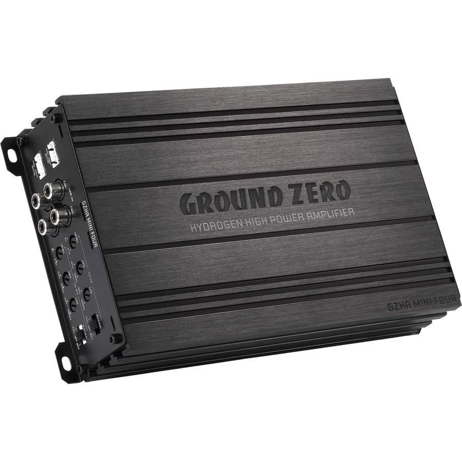 Ground Zero GZHA MINI FOUR, 4 csatornás Class D digitális erősítő. Hydrogen Mini sorozat: Rendkívül kompakt méret, Class D technológia, 2 ohm stabil SMD áramkör, magas jelszint bemenet.