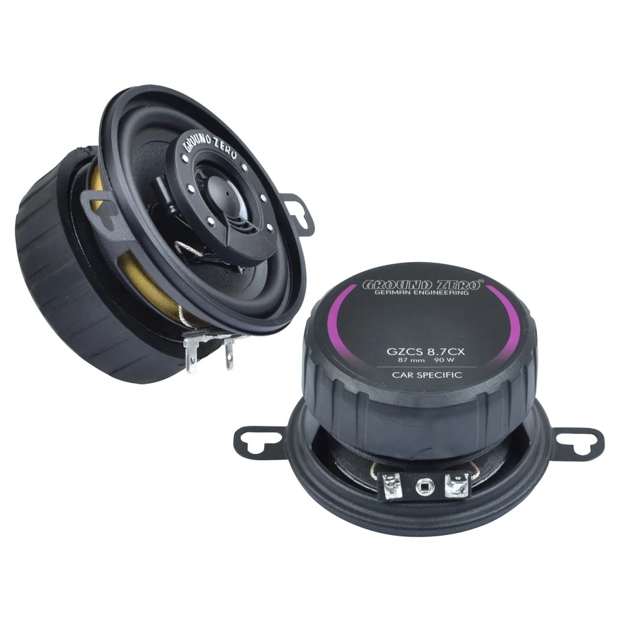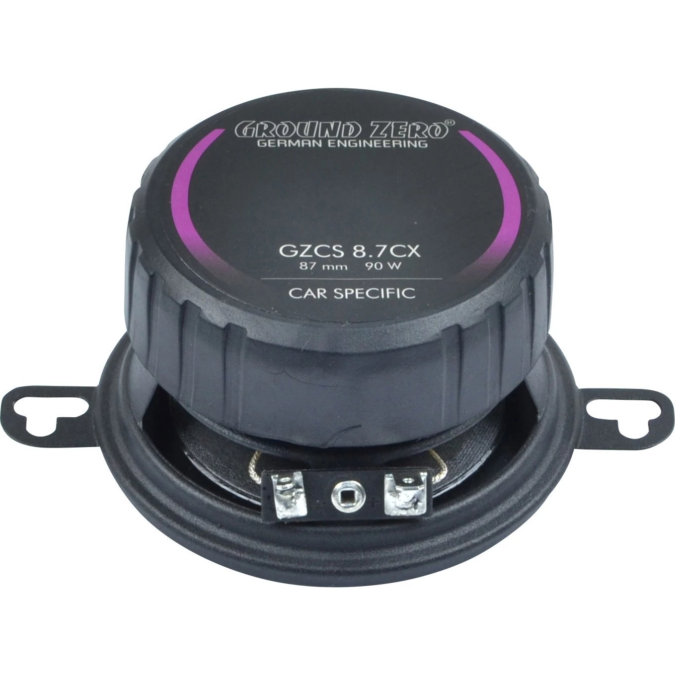 Ground Zero GZCS 8.7CX 8,7cm átmérőjű 2 utas koaxiális hangszóró, 50W folyamatos terhelhetőségű. Car Specific sorozat: Super dóm magassugárzó, bevont papír kónusz, acél kosár, egyszerű szerelhetőség.