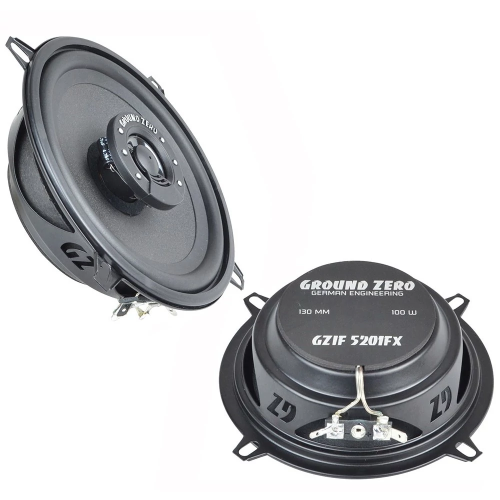 Ground Zero GZIF 5201FX 13cm átmérőjű 2 utas koaxiális hangszóró, 60W folyamatos terhelhetőségű. Iridium extra lapos sorozat: lágy dóm magassugárzó, Audiofil bevont papír kónusz, dinamikus, természetes hangzás, acél kosár.
