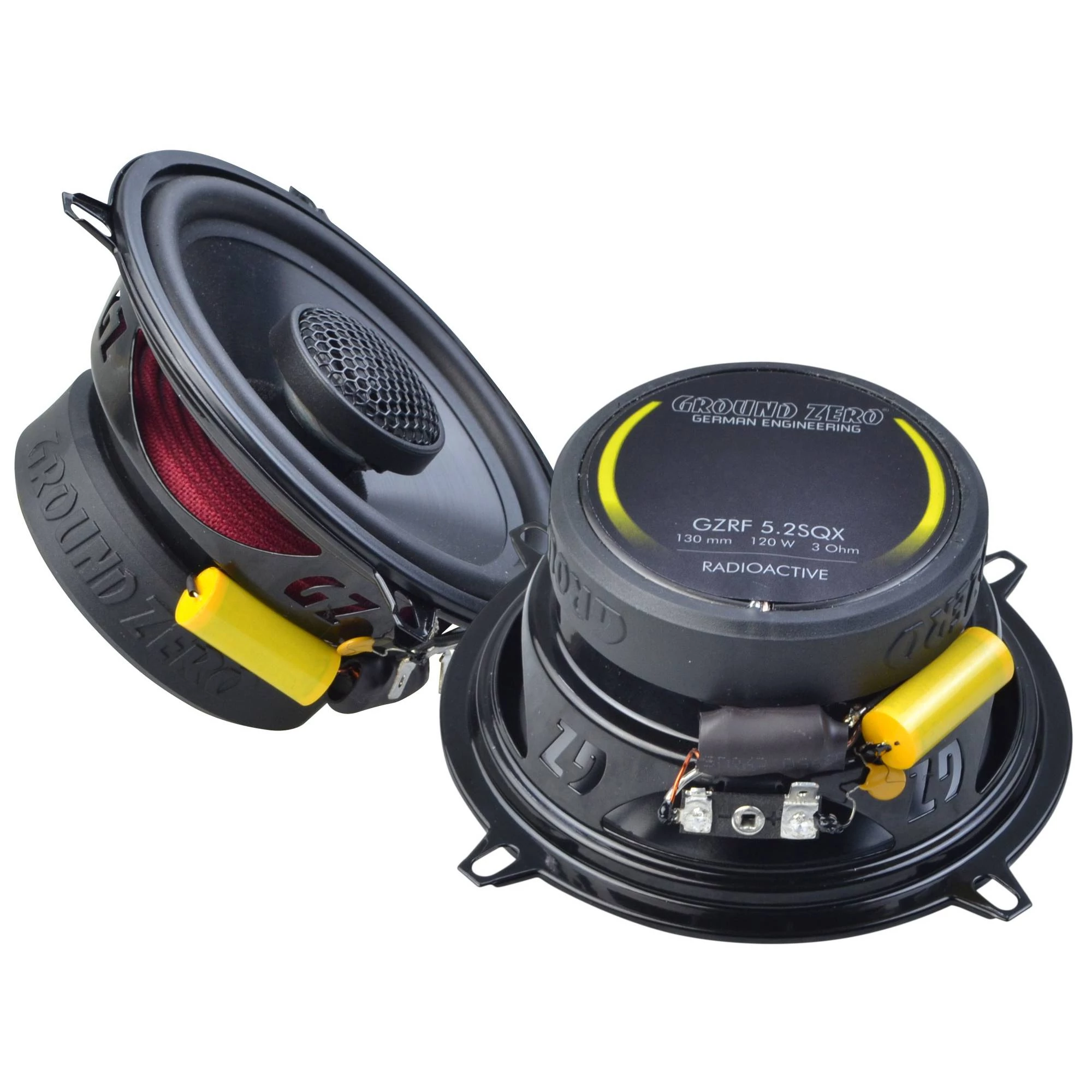 A Ground Zero GZRF 5.2SQX a Radioactive sorozat része, amely a pontos és dinamikus hangzásáról ismert. A 13 cm-es 2 utas koaxiális hangszóró kompakt mérete mellett erőteljes teljesítményt nyújt, így kiváló választás a gyári hangszórók cseréjére. A fekete eloxált alumínium kónusz feszes közép- és mélytartományt biztosít, míg a 25 mm-es selyem dóm magassugárzó tiszta és részletgazdag magas hangokat ad vissza.