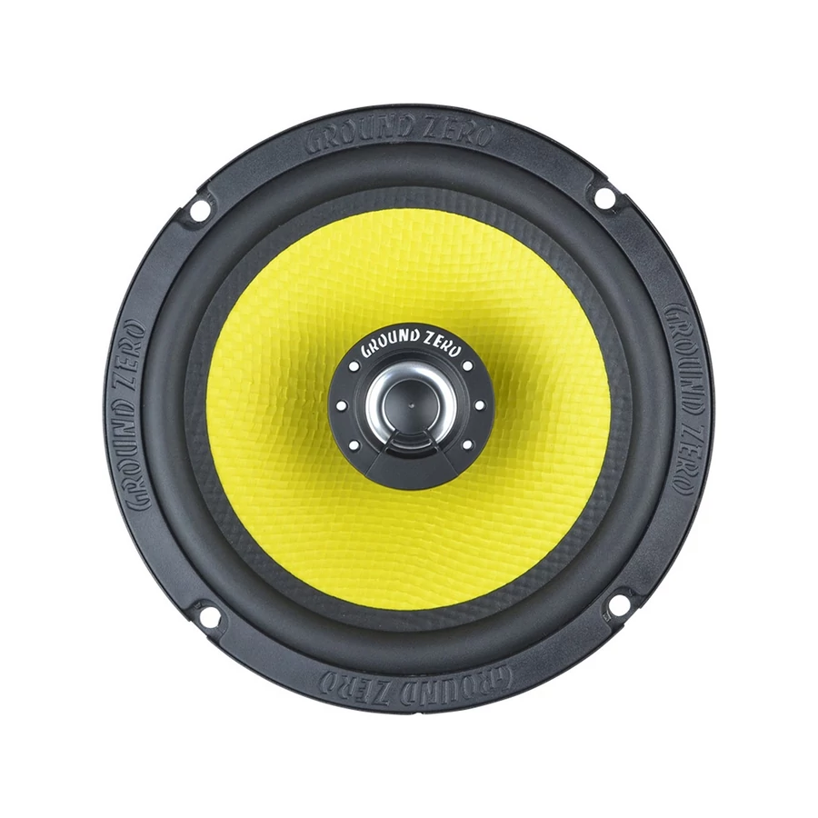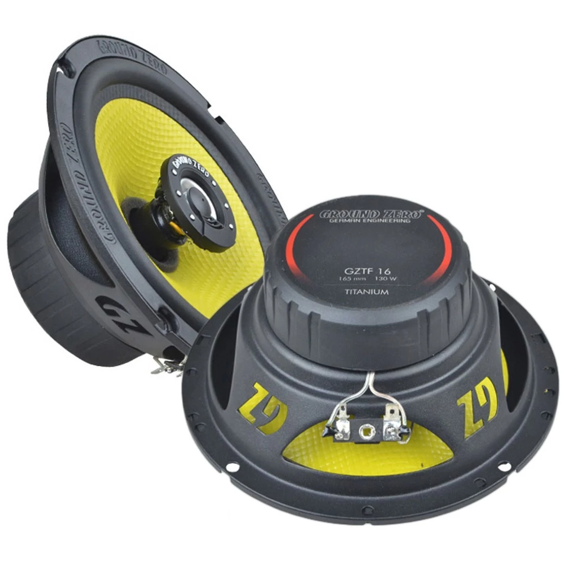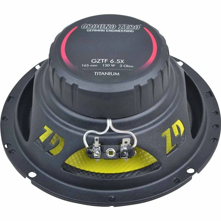 Ground Zero GZTF 6.5X 16,5cm átmérőjű 2 utas koaxiális hangszóró, 90W folyamatos terhelhetőségű. Titanium sorozat: 3Ω tekercs, Mylar magassugárzó, HQPP-strukturált kónusz, kiegyensúlyozott, természetes hangzás, acél kosár.