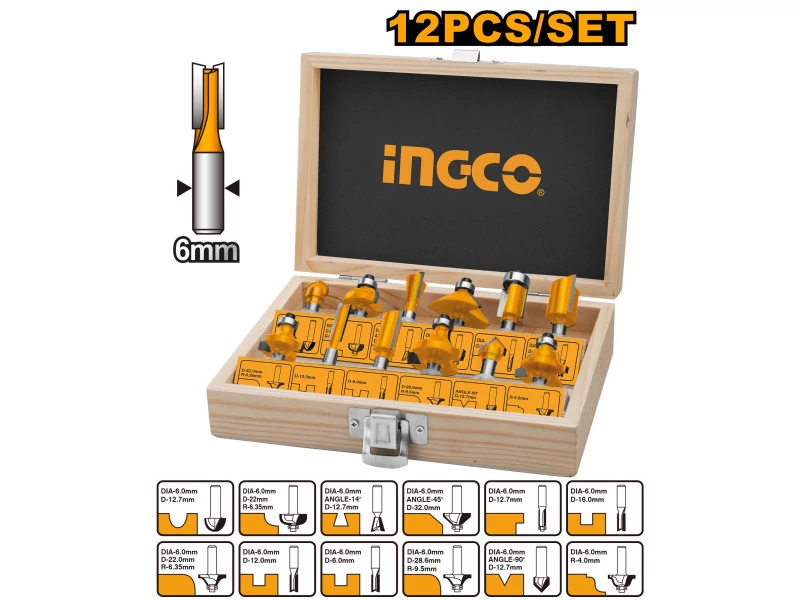 A készletben található profilmarók a legáltalánosabb, a leggyakrabban használt elemeket tartalmazza. Alkalmas kifejezetten barkács célokra, különböző puha-, félkemény-, keményfák megmunkálására, kézi marógéppel. Fa dobozban.