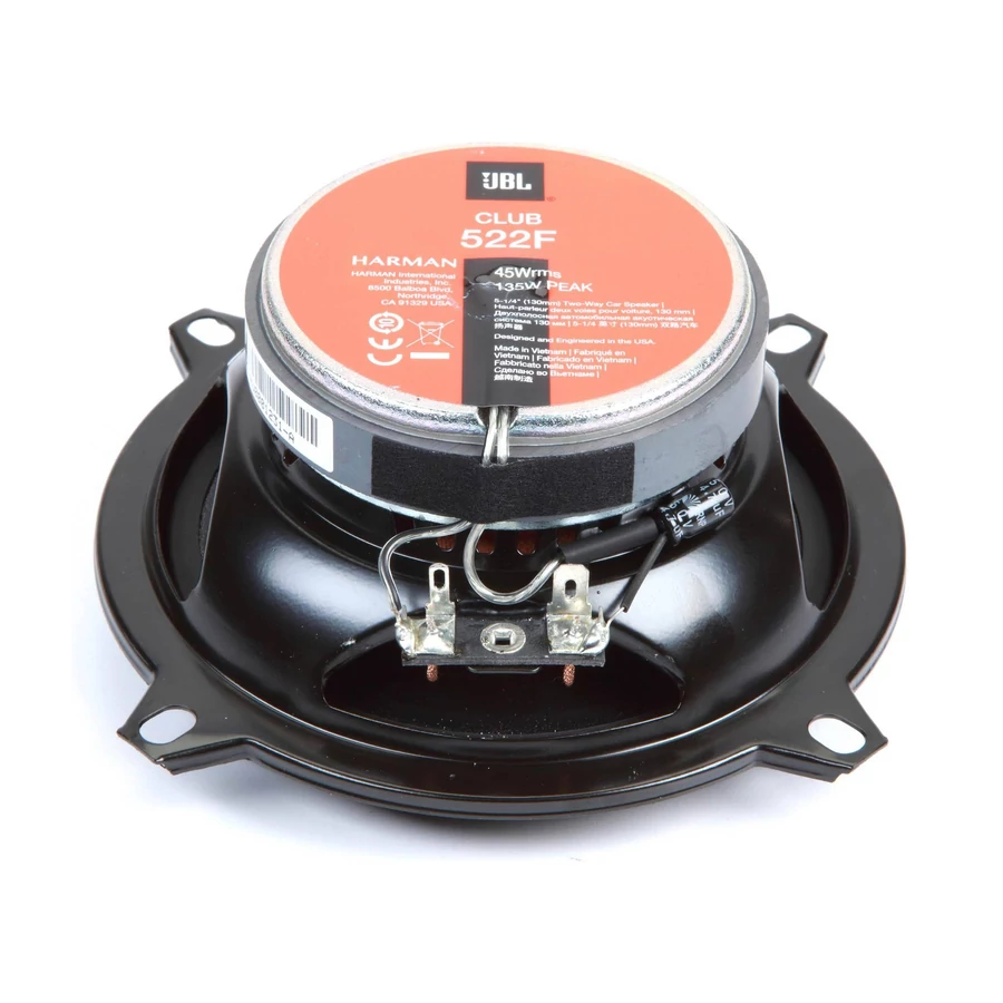 A JBL Club 522F azok számára ideális, akik szeretnék lecserélni gyári hangszóróikat egy jobb hangminőségű, kompakt méretű koaxiális szettre. Megbízható teljesítményt nyújt a mindennapi zenehallgatásban, tiszta magasakkal és feszes basszussal.