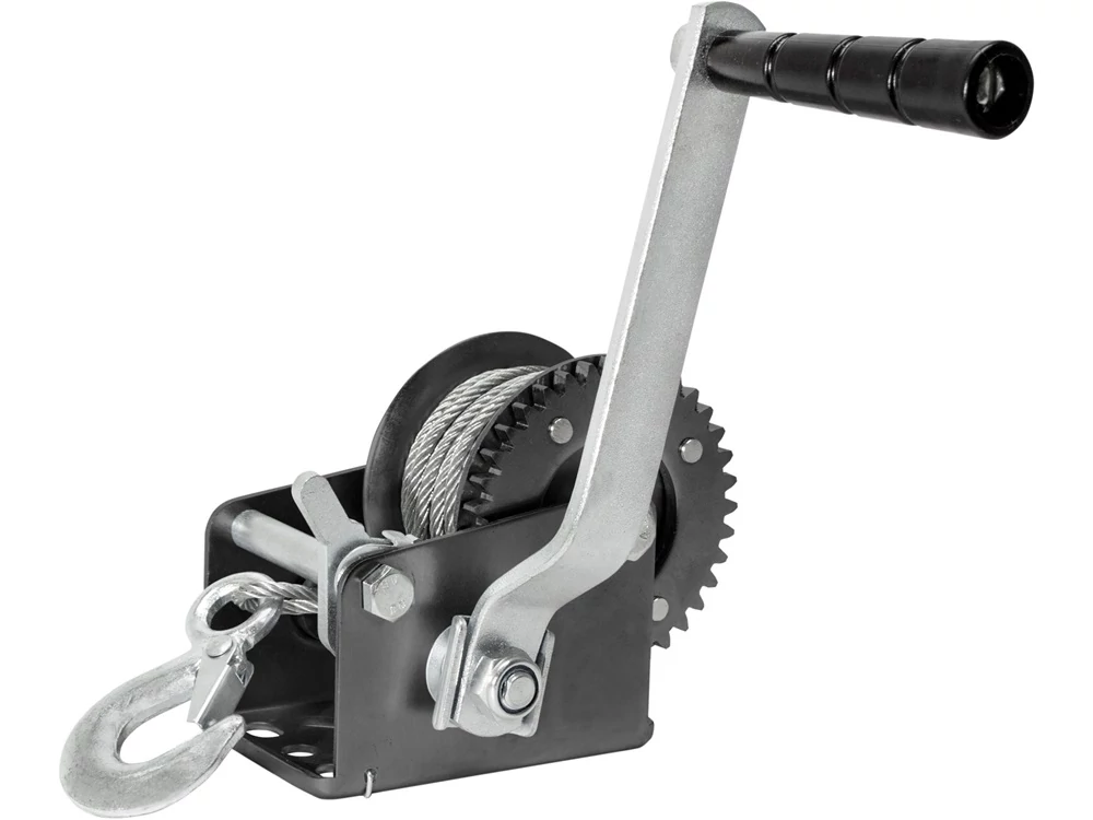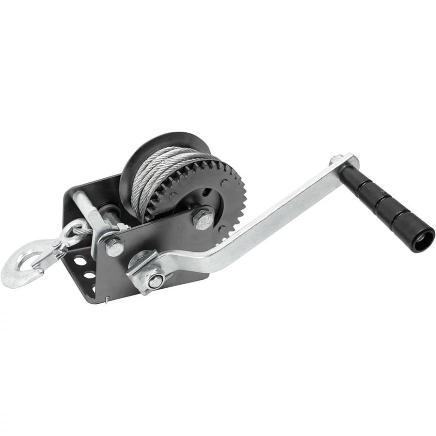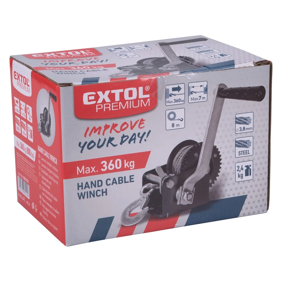 Extol Premium kábelcsörlő, ami 1 sebességes modell, 1 áttételezési aránnyal, horoggal és talppal, amely az előre elkészített furatokon keresztül bármilyen pozícióban rögzíthető. Terhek vízszintes síkban történő szállítására szolgál, például dobozok rámpán történő húzására. Felépítéséből adódóan függőleges emelésre nem alkalmas. EK megfelelőségi nyilatkozat a felhasználói kézikönyvben!