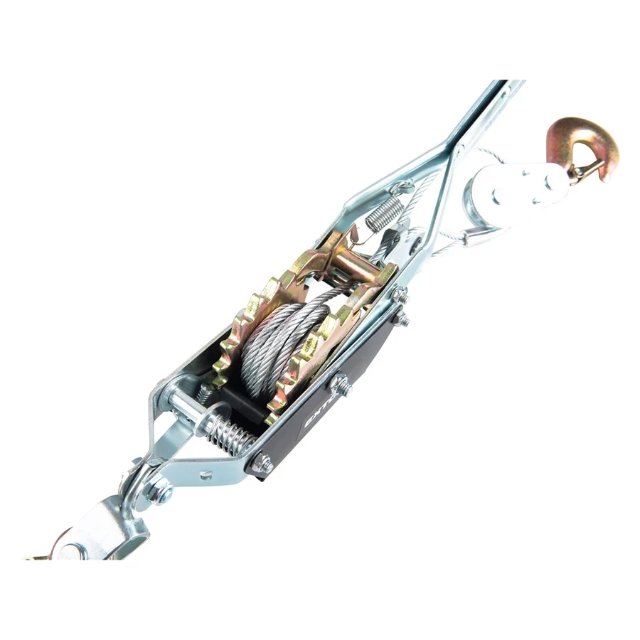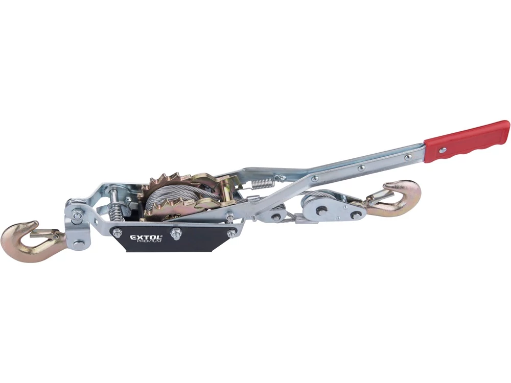 Extol premium kábelhúzó ami egy kézi hajtású kötélcsörlő. Egy acél testből áll, amely dobot, fogaskerekeket és egy nagy, megfelelően kiválasztott áttételű racsnis mechanizmust tartalmaz. A hajtókar a dob mozgatására és az acélkötél feltekerésére szolgál. A csörlő akár 2000 kg súlyú terhet is képes mozgatni kb. 2 m távolságban. Terhek vízszintes síkban történő szállítására szolgál, például dobozok rámpán történő húzására.