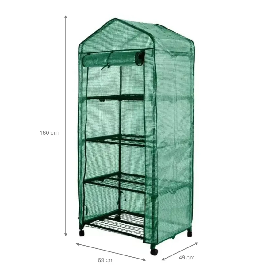 Az N04721 összecsukható kerti fóliaház ideális választás erkélyekre, teraszokra vagy kis kertekbe, ahol a hely korlátozott, de a növénytermesztés továbbra is fontos szempont. Kompakt mérete és mobil kialakítása négy kerékkel lehetővé teszi a könnyű mozgatást, így mindig az optimális helyre helyezhető. A négy polcos rendszer hatékony térkihasználást biztosít, míg a PE fólia védi a növényeket az időjárás viszontagságaitól, miközben biztosítja számukra az ideális növekedési környezetet.
