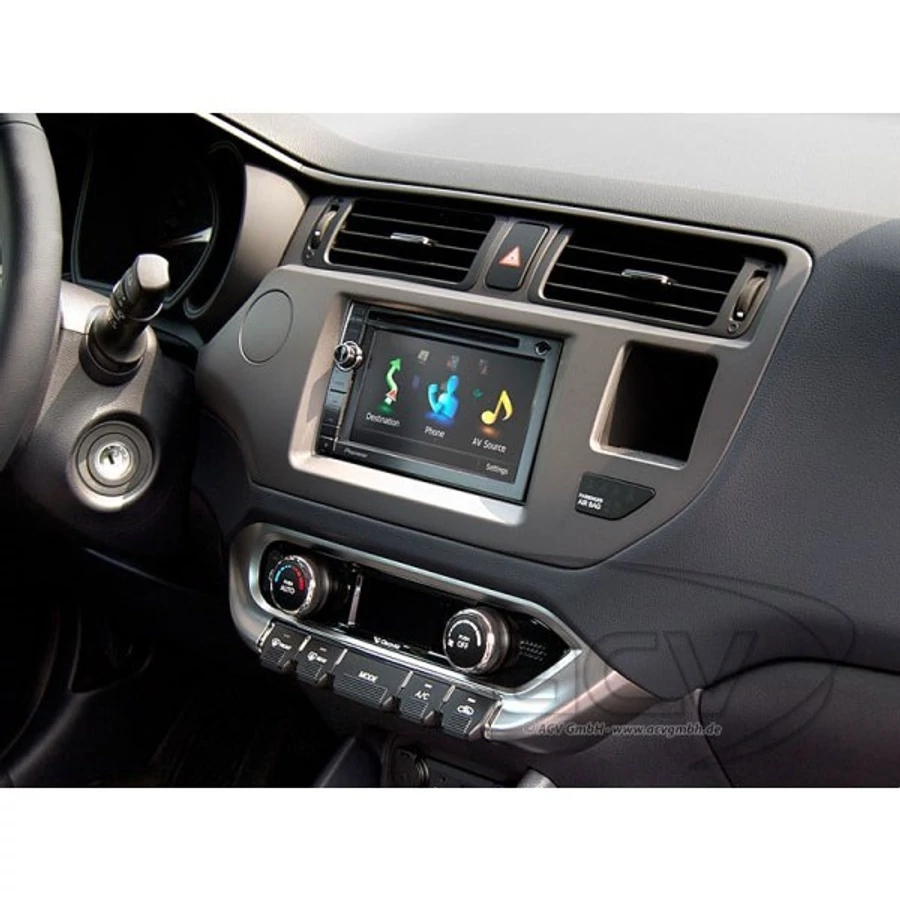 - Leírás: Kia Rio 2 DIN autórádió beépítő keret. A beépítő keret átalakítja a gyári rádió, műszerfal kialakítását úgy, hogy lehetővé tegye a gyári rádió cseréjét univerzális szabvány 2 DIN méretű fejegységre. Kiváló minőségű német ACV gyártmány.