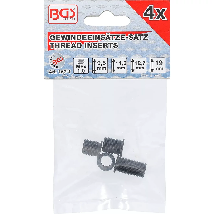 A BGS 167-hez tartozó menetes készlet egy 4 darabos szett, amely ideális a gyújtógyertya menetjavításához.