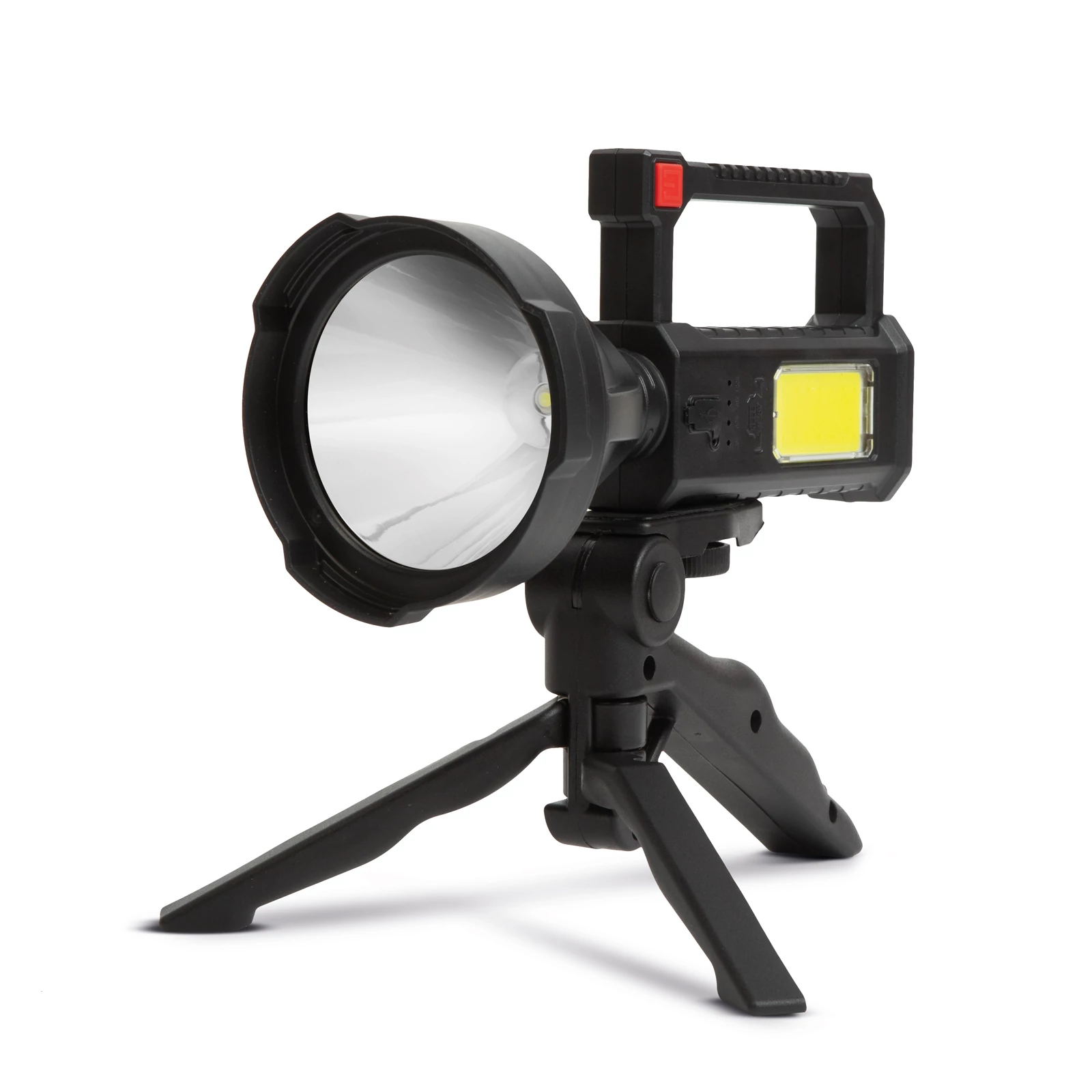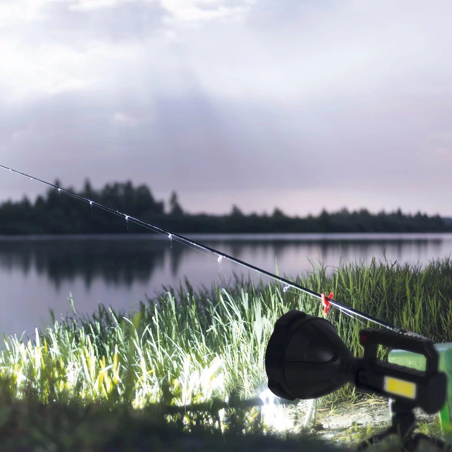 Strapabíró kialakítású, kisméretű, mégis óriási fényerővel rendelkező keresőreflektor, amely akkumulátoros működésének köszönhetően hosszan tartó működést garantál. A nagy teljesítményű, extra fényerővel rendelkező, XPE50-es CREE LED, akár 200 méter szúrófényt is képes kibocsátani magából, így minden körülmények között számíthat rá. Az ergonomikus ház IP55 védelemmel rendelkezik, így esős, párás időben is kiváló szolgálatot nyújt. A lámpa kényelmes használatát kétféle csúszásmentes, bordázott fogantyú garantálja, mely közül az egyik háromlábú tripoddá is alakítható, így bárhová elhelyezve állandó fényként világítja meg a munkaterületet. Ideális felszerelése lehet túrázóknak, vadászoknak, horgászoknak, keresőcsapatoknak, biztonsági őröknek vagy akár hatóság embereinek is.