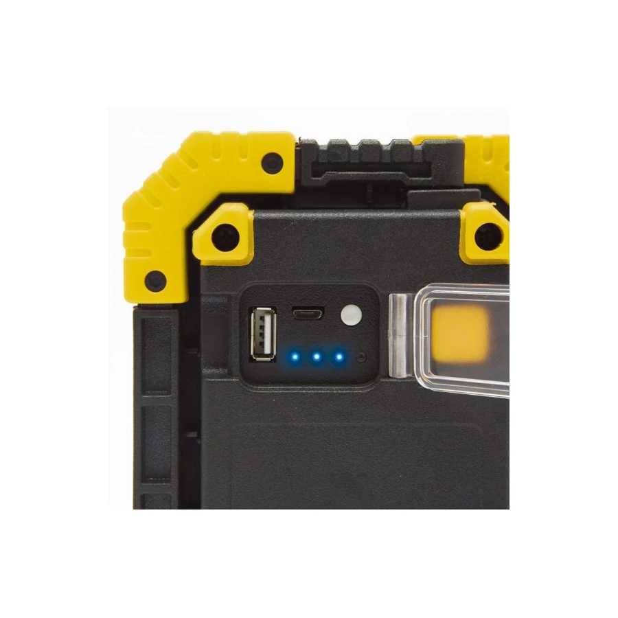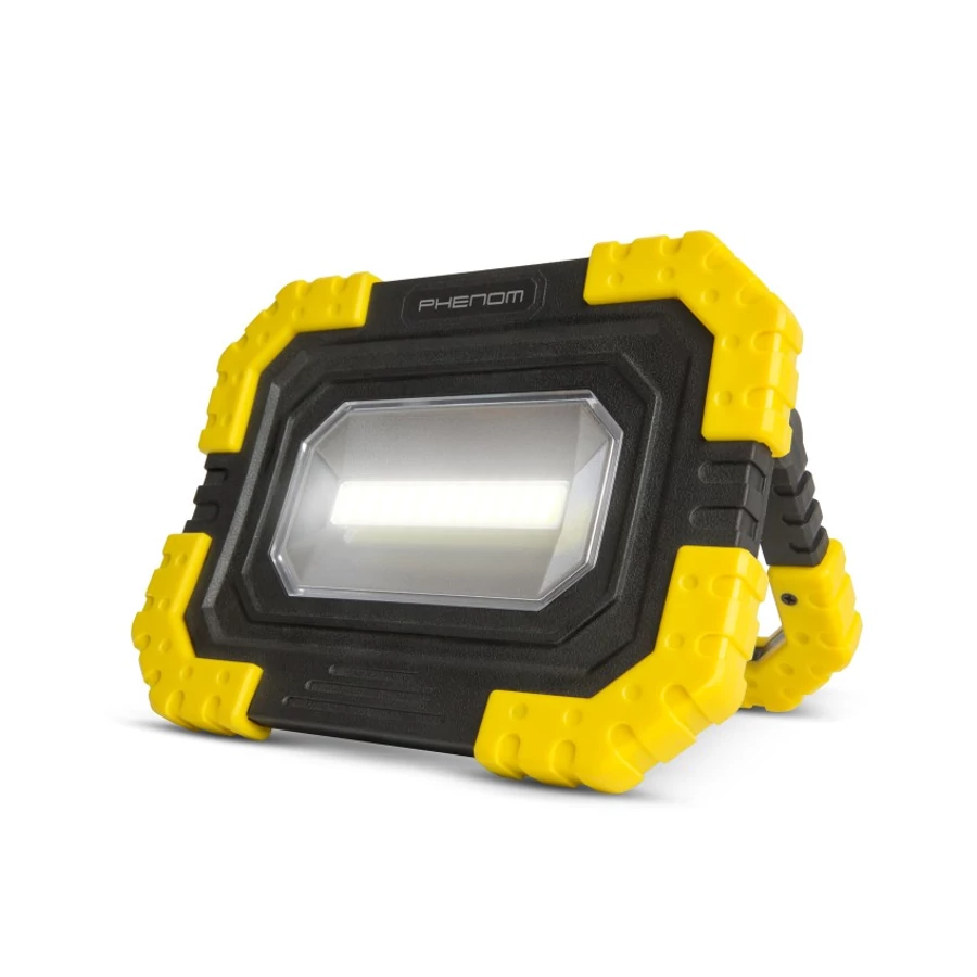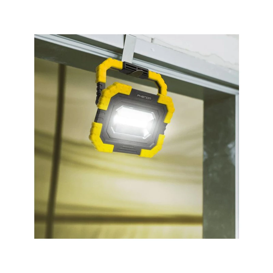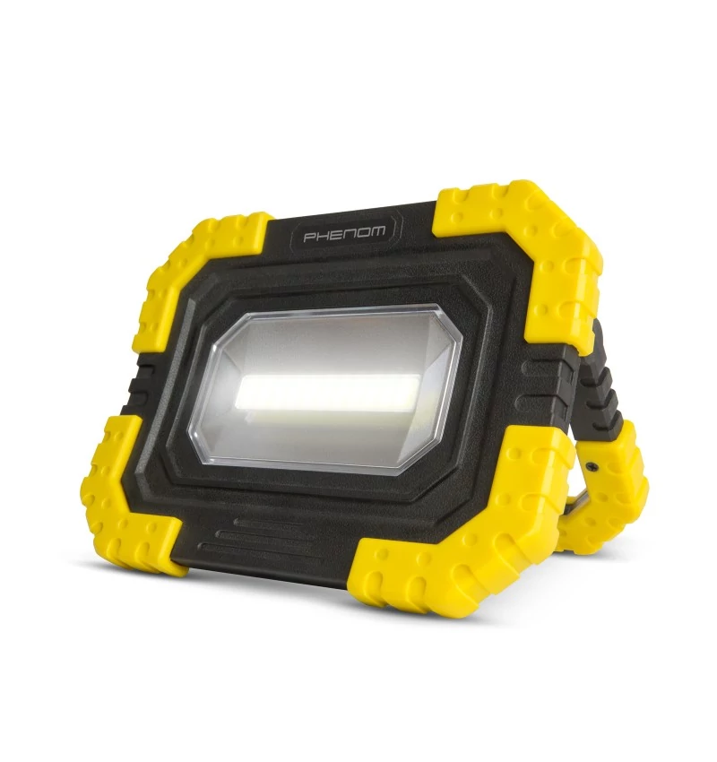 Phenom termékcsalád minőségi új reflektora, amely nélkülözhetetlen kelléke lehet műhelyeknek, építkezéseknek vagy akár háztartásának. A nagy teljesítményű 16 W-os COB LED ~1000 Lumen fényerővel akár 6 órán keresztül világítja be a teret. A beépített 5V-os USB port megfelelő tápellátást biztosít például mobiltelefonja feltöltéséhez.