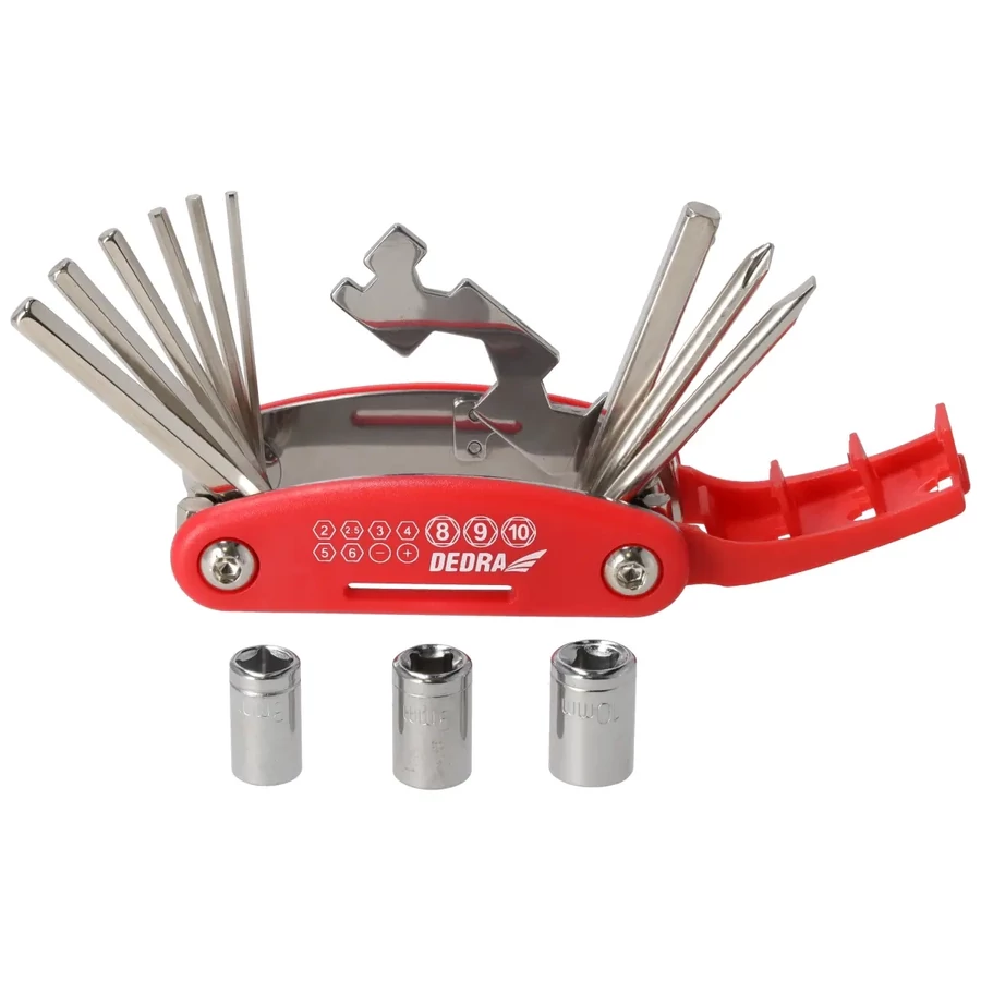 A DEDRA 06F244 multi-tool egy elengedhetetlen eszköz minden kerékpártúrához, amely biztosítja, hogy technikai problémák esetén mindig kéznél legyen a megfelelő megoldás.